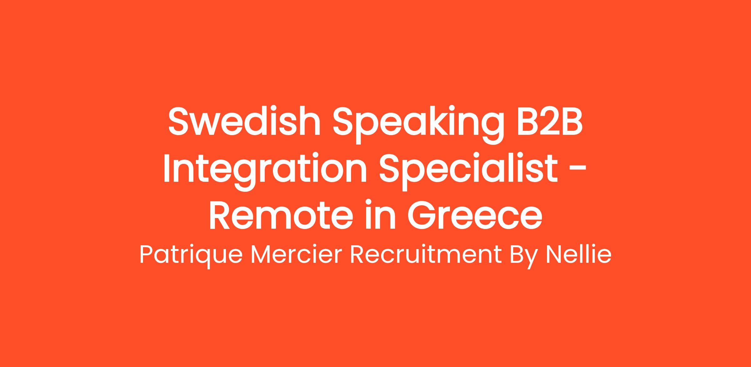 Patrique Mercier Recruitment FR is thrilled to present the role of Swedish Speaking B2B Integration Specialist. In this dynamic position, you will engage with our Swedish-speaking clients to facilitate B2B integrations and optimize their business processes. Your role will be vital in helping organizations leverage technology to enhance their collaborative efforts and operational efficiency.