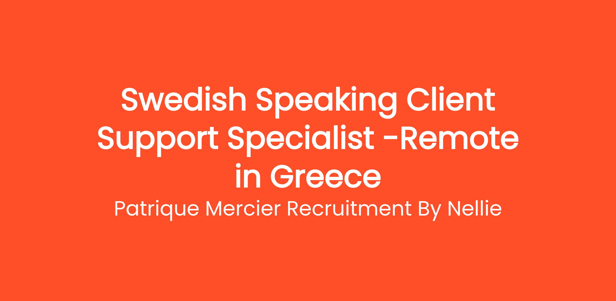Patrique Mercier Recruitment FR is delighted to announce an opening for a Swedish Speaking Client Support Specialist. This role is perfect for candidates who are driven by an enthusiasm for customer service and are ready to assist Swedish-speaking clients with their inquiries and issues in a positive and professional manner.