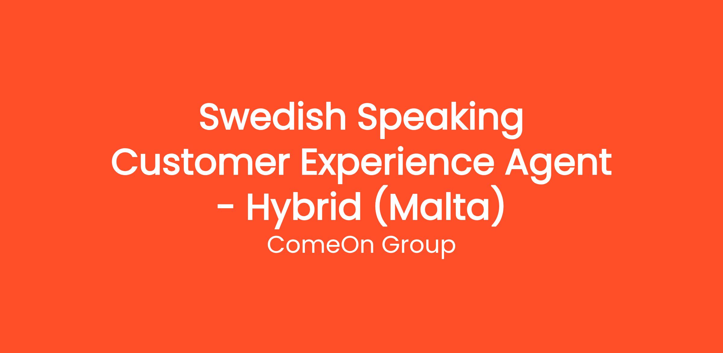 Swedish Speaking Customer Experience Agent – Hybrid (Malta)