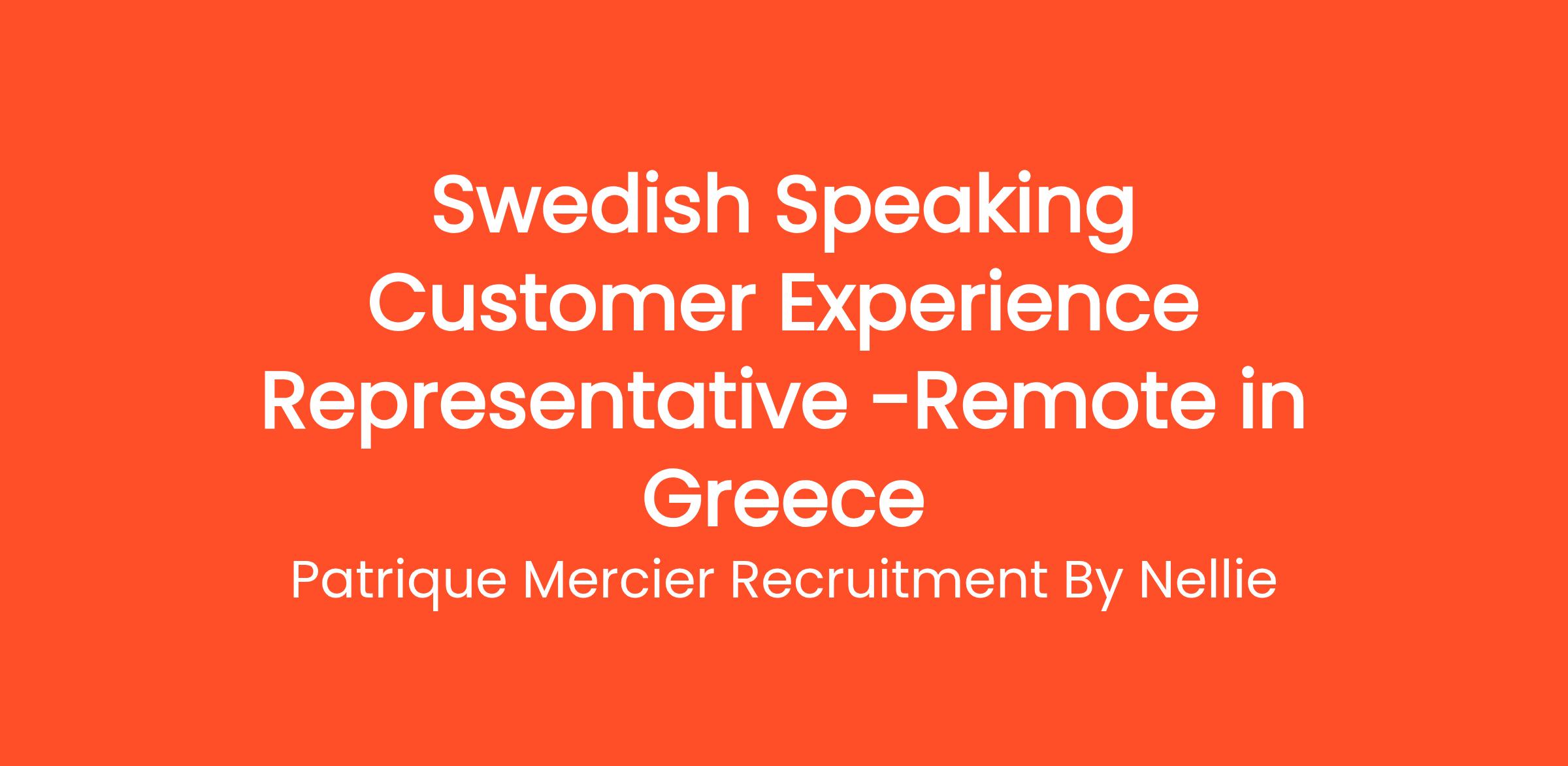 Patrique Mercier Recruitment FR is a premier recruitment agency dedicated to connecting talented individuals with top-tier job opportunities across Greece. We are excited to announce an opening for a Swedish Speaking Customer Experience Representative to join our vibrant team. In this essential role, you will be responsible for fostering positive relationships with our Swedish-speaking customers, ensuring they receive exemplary service and support.