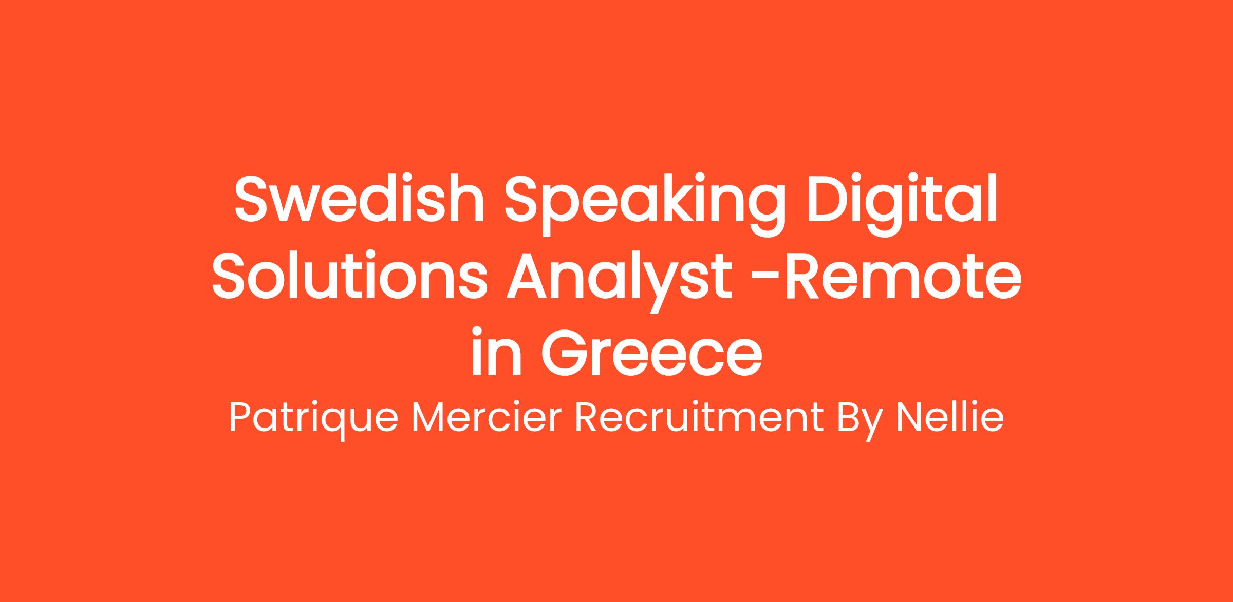 Patrique Mercier Recruitment FR is a renowned recruitment agency dedicated to assisting professionals in finding meaningful career opportunities across Greece. We are thrilled to announce an opening for a Swedish Speaking Digital Solutions Analyst. In this role, you will be responsible for analyzing client needs and implementing effective digital solutions to enhance their business operations. Your insights and expertise will play a vital role in transforming digital strategies into successful outcomes for our clients.