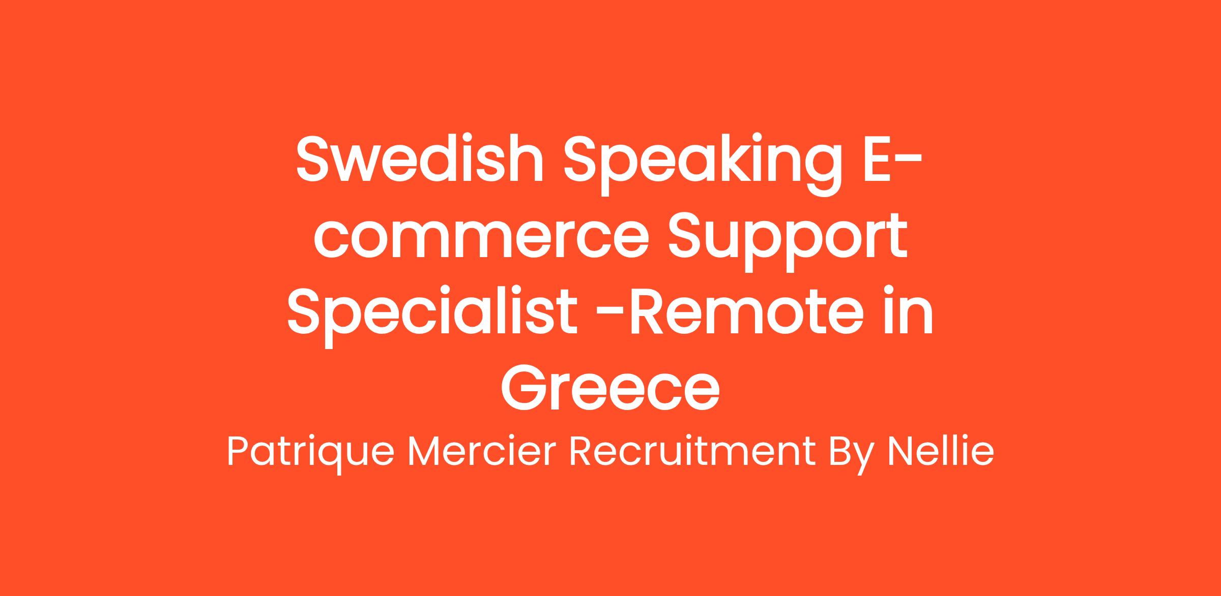 Patrique Mercier Recruitment FR is proud to announce a vacancy for a Swedish Speaking E-Commerce Support Specialist. This exciting position is ideal for individuals who are enthusiastic about e-commerce and fluent in Swedish. In this role, you will be key in providing outstanding support to our Swedish-speaking customers, ensuring that their online shopping experience is smooth and enjoyable.