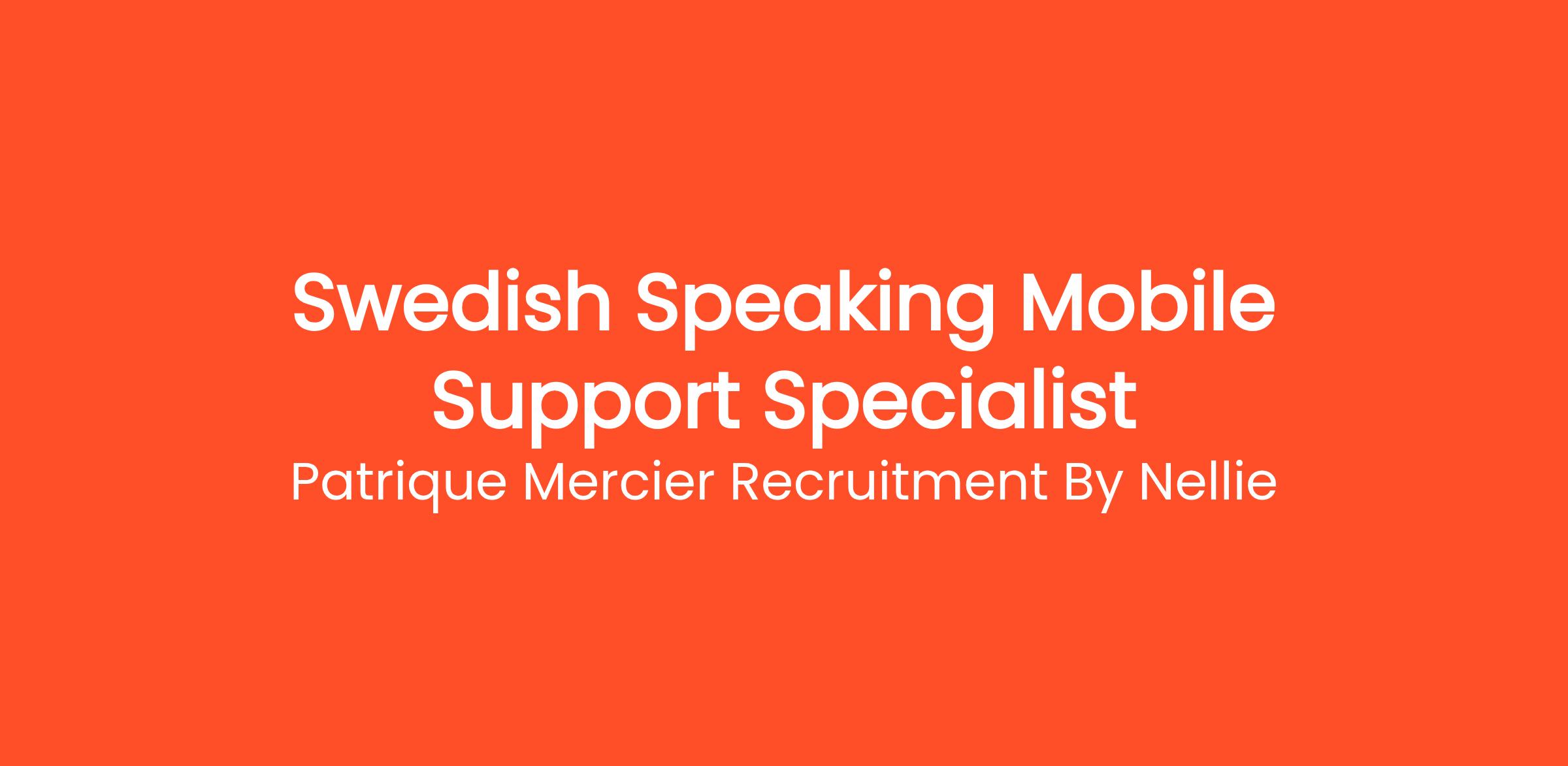 Patrique Mercier Recruitment FR is pleased to present an exciting opportunity for a Swedish Speaking Mobile Support Specialist. This position is designed for those who are enthusiastic about mobile technology and committed to delivering top-notch customer service. In this role, you will assist Swedish-speaking clients with their mobile device queries and technical challenges, helping to ensure a seamless customer experience.
