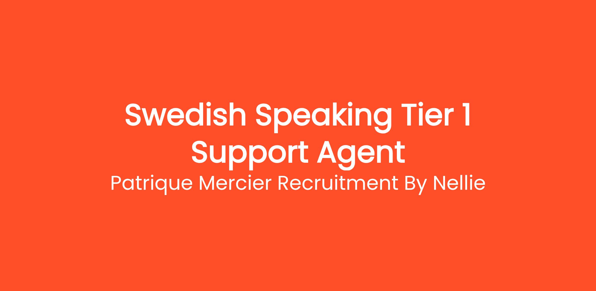 Patrique Mercier Recruitment FR is excited to welcome applications for the position of Swedish Speaking Tier 1 Support Agent. This role is tailored for individuals who are dedicated to providing excellent customer service while engaging with our Swedish-speaking clients. As a Tier 1 Support Agent, you will be responsible for providing essential support and ensuring a positive customer experience.