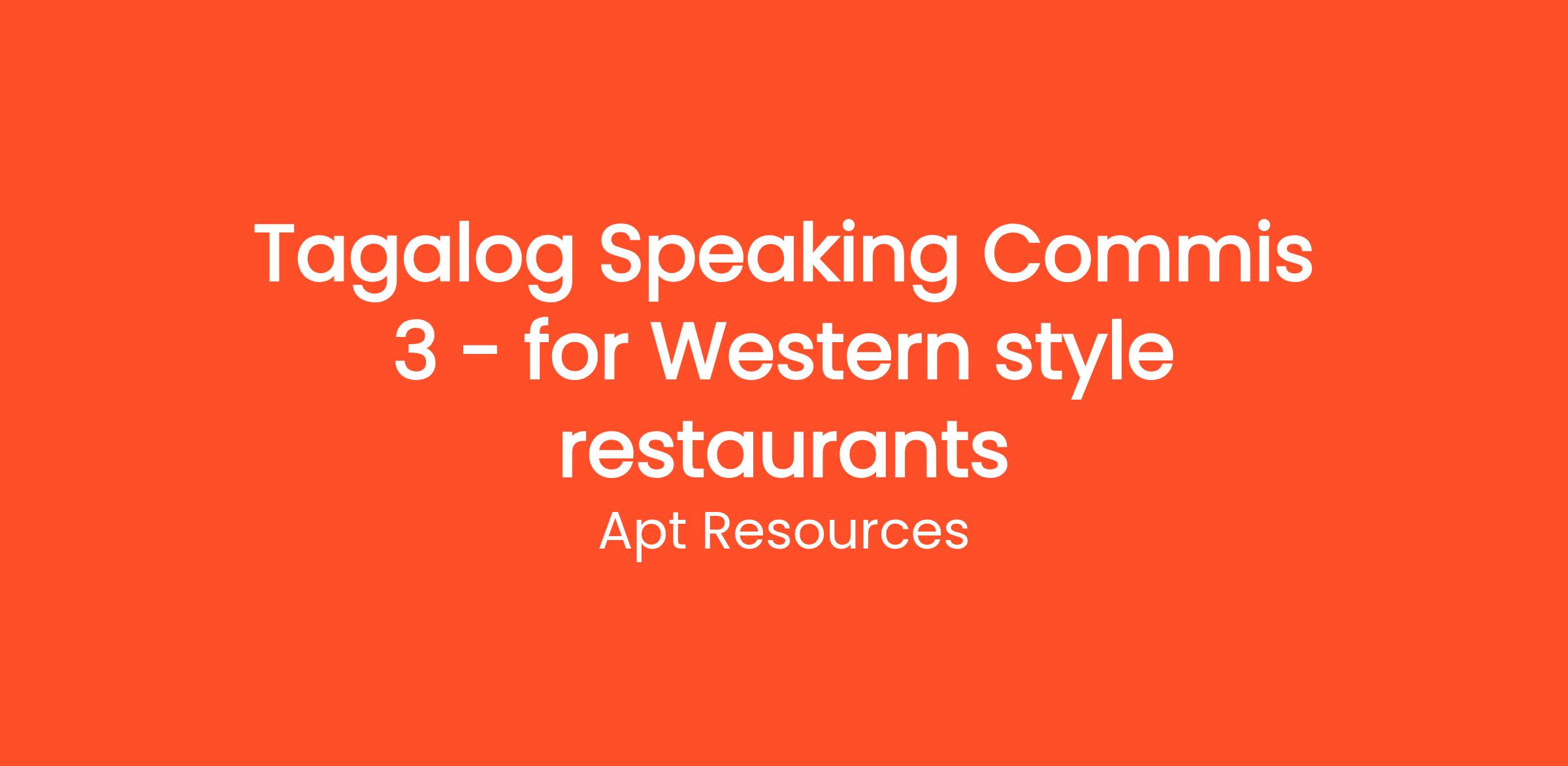 Tagalog Speaking Commis 3 - for Western style restaurants