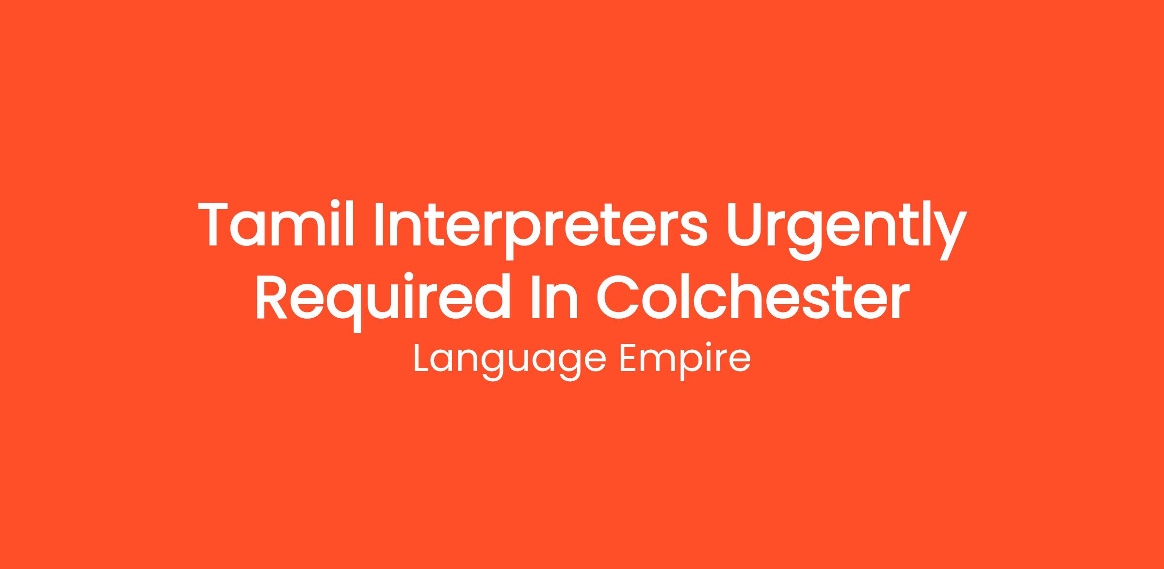 We are urgently recruiting for freelance Tamil interpreters based in Colchester to work within various settings such as the NHS, Local Authorities, Police, Probation and other public and private organisations.