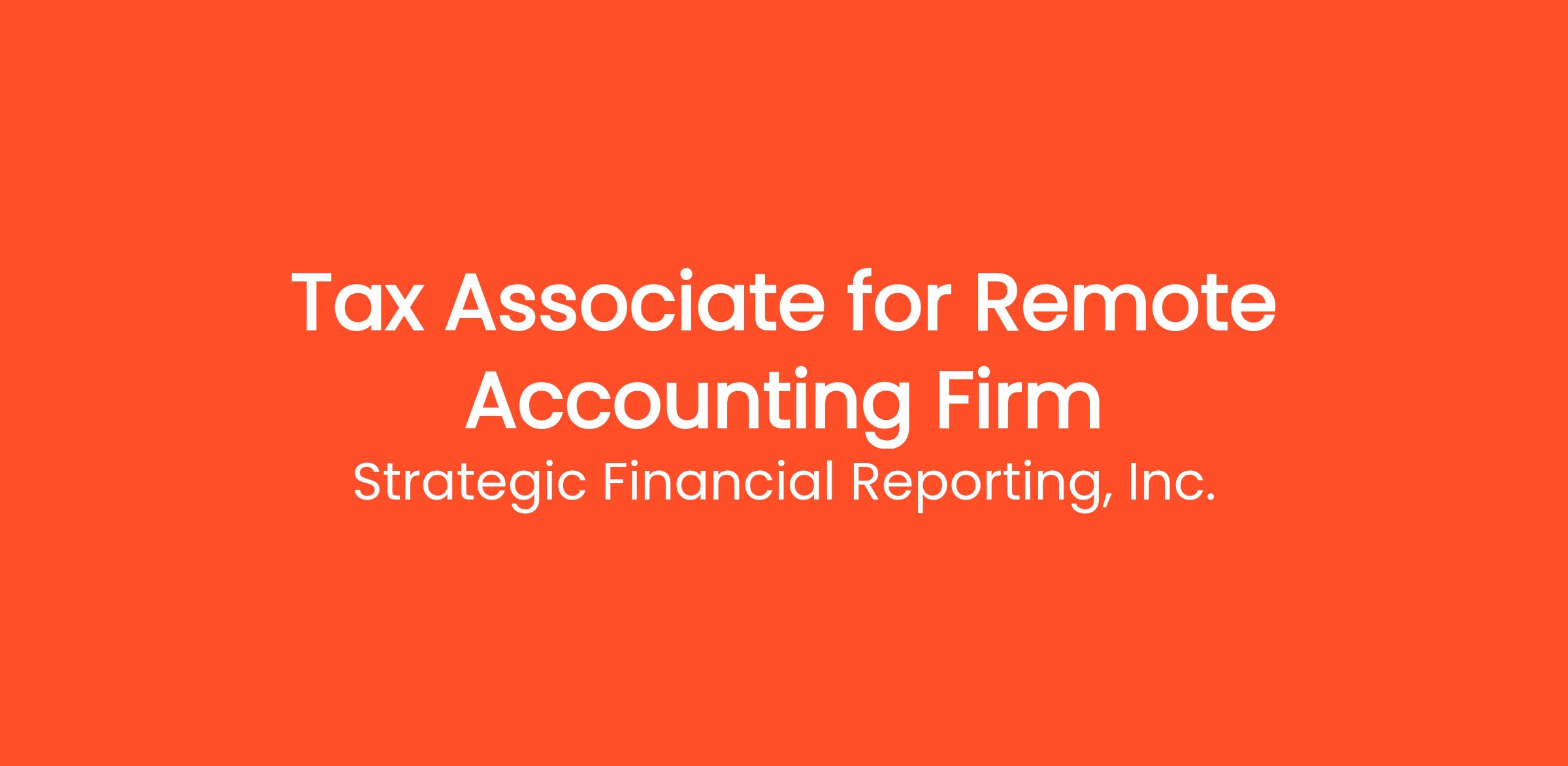 Join the team at Strategic Financial Reporting, Inc. (SFR), where our primary goal is to provide top-notch bookkeeping, tax, accounting, and consulting services to our diverse clientele. We empower our employees to design their Perfect Job Positions to ensure they can thrive in areas they are passionate about. We are currently seeking a motivated Tax Associate who is eager to contribute to our remote accounting firm and support our clients effectively.
