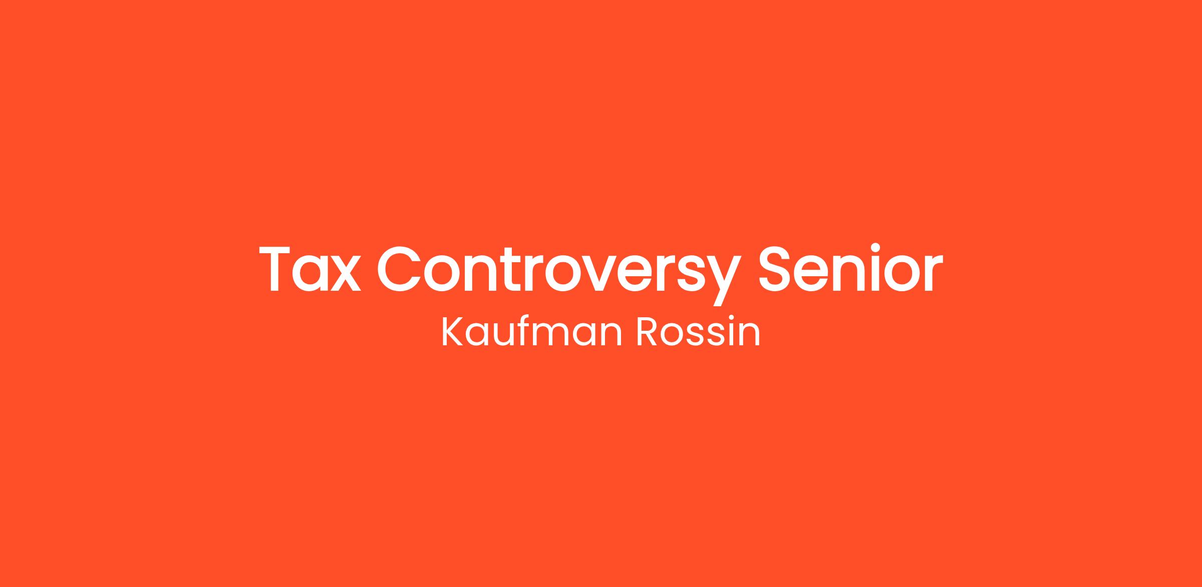 Kaufman Rossin is seeking a Tax Controversy Senior to join our dynamic team of Tax Controversy professionals in Boca Raton: