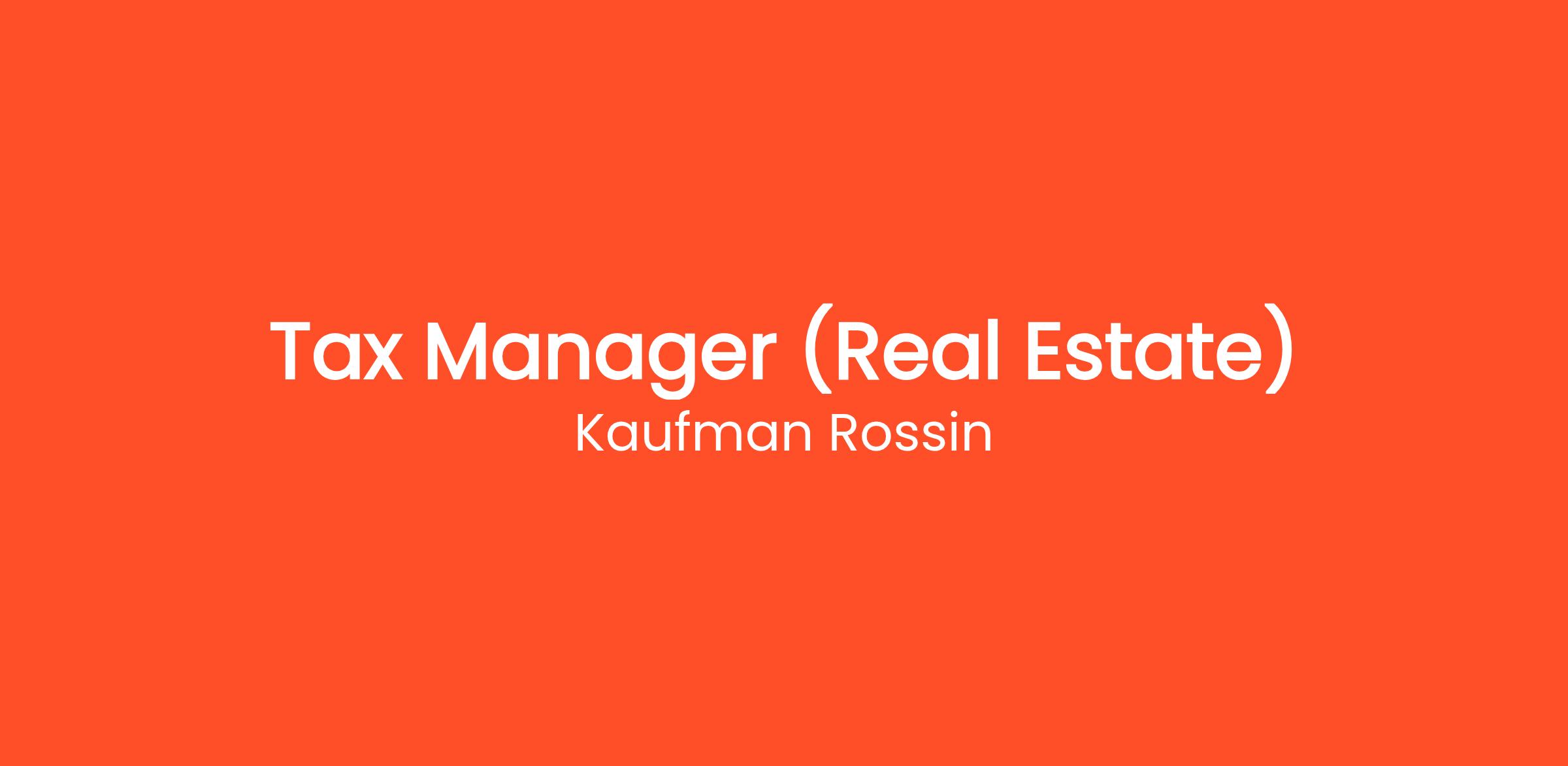 Kaufman Rossin is seeking a Tax Manager with Real Estate industry experience to join our dynamic team in Miami. This important role includes client relationships, technical tax compliance and consulting work, and managing staff.