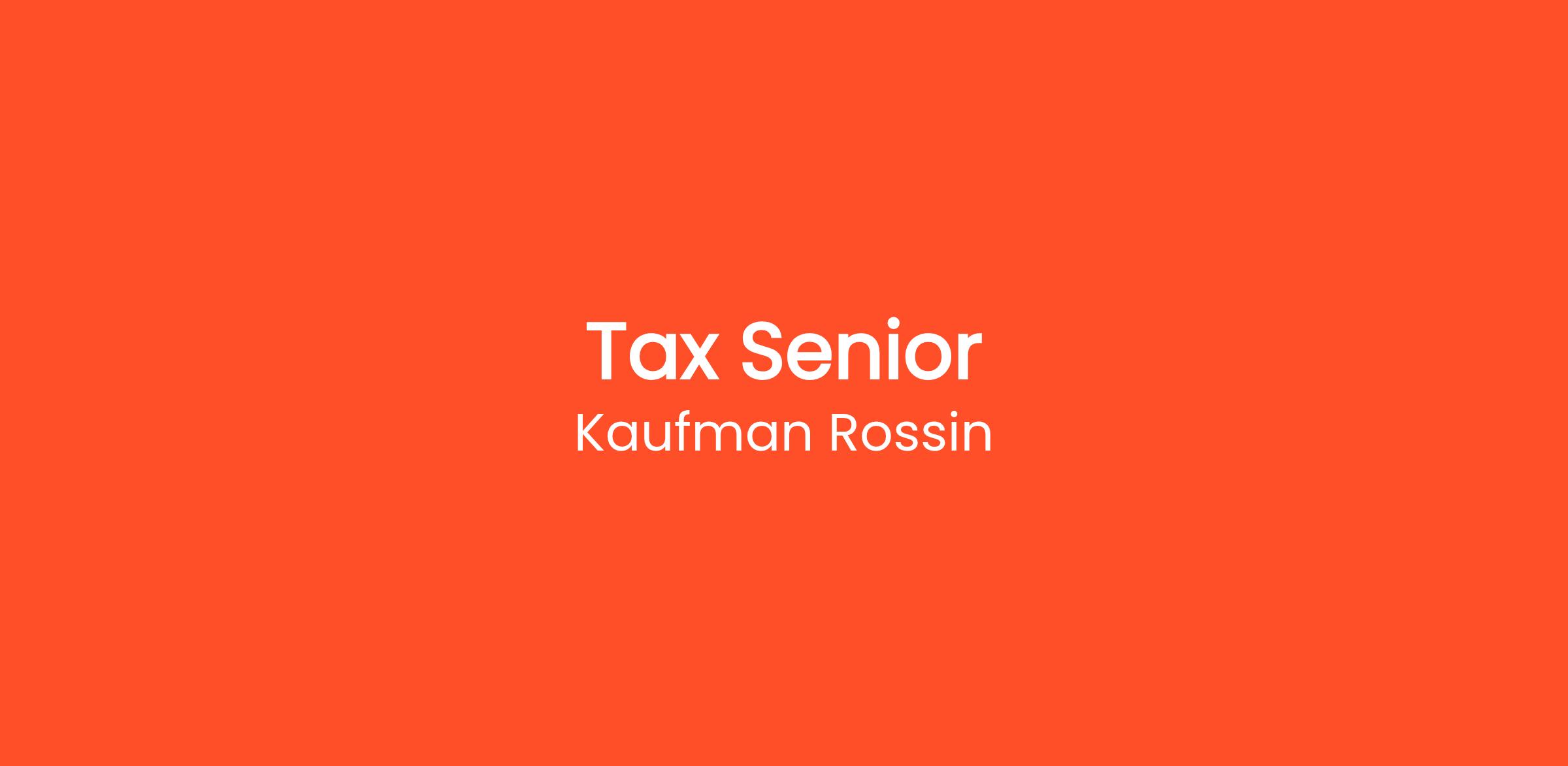 Kaufman Rossin is seeking senior-level tax professionals to join our dynamic Tax Services team in Boca Raton. Our Tax group provides planning and tax compliance services to inbound and outbound owner/entrepreneurial clients.