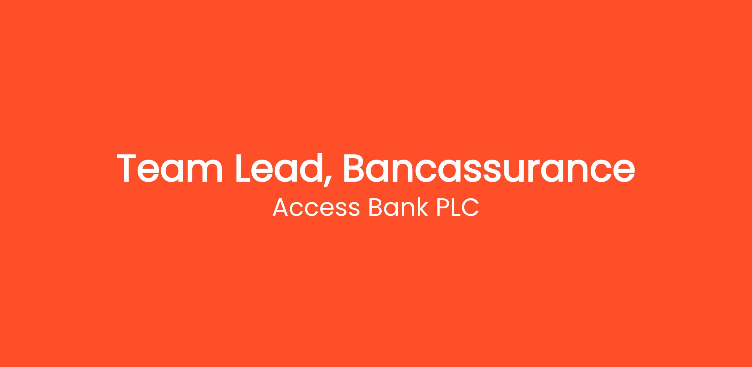 As the Team Lead for Bancassurance at Access Bank PLC, you will be responsible for driving the integration of banking and insurance services to maximize customer value and revenue growth. Your primary role will involve managing the Bancassurance team, developing strategic partnerships, and ensuring the efficient delivery of insurance products through the bank's channels.