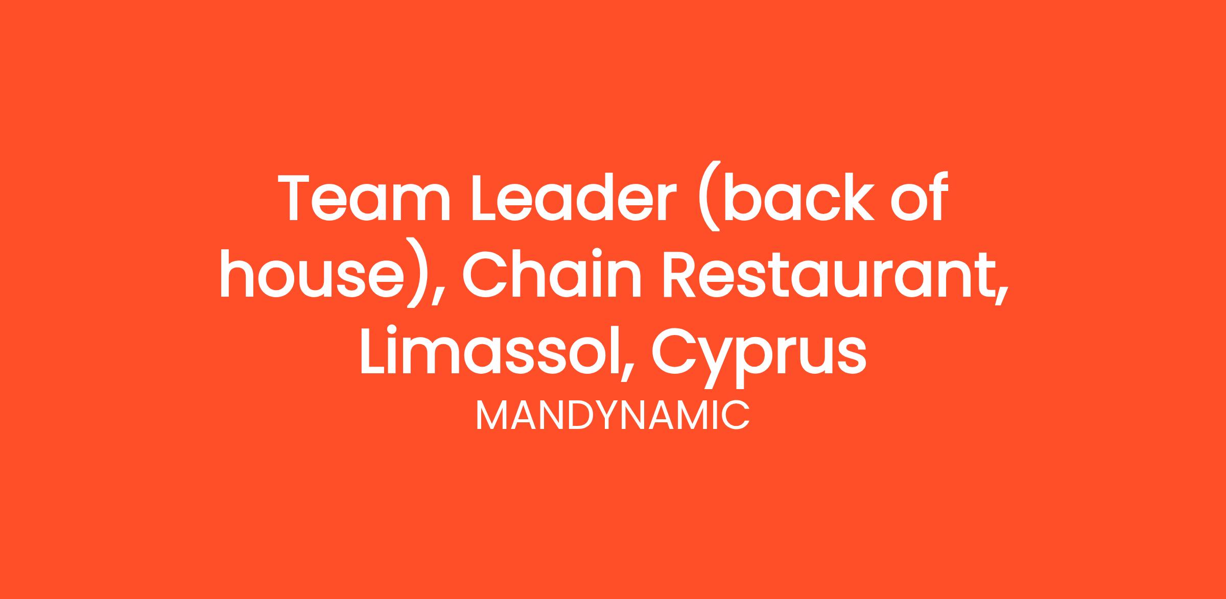 MANDYNAMIC is seeking Floor Managers on behalf of well known Chain Restaurants in Limassol, Cyprus. Candidates should have a positive attitude, responsibility and professionalism.