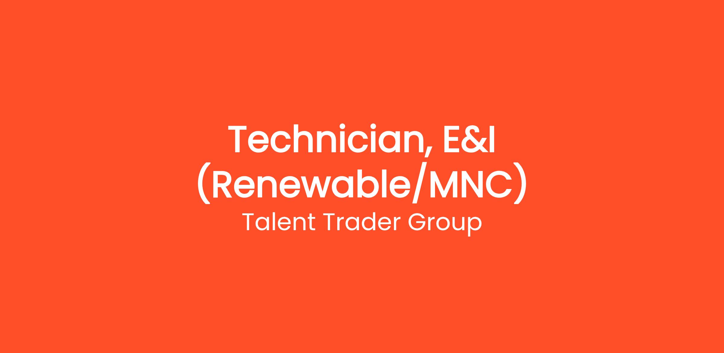 Technician, E&I (Renewable/MNC)