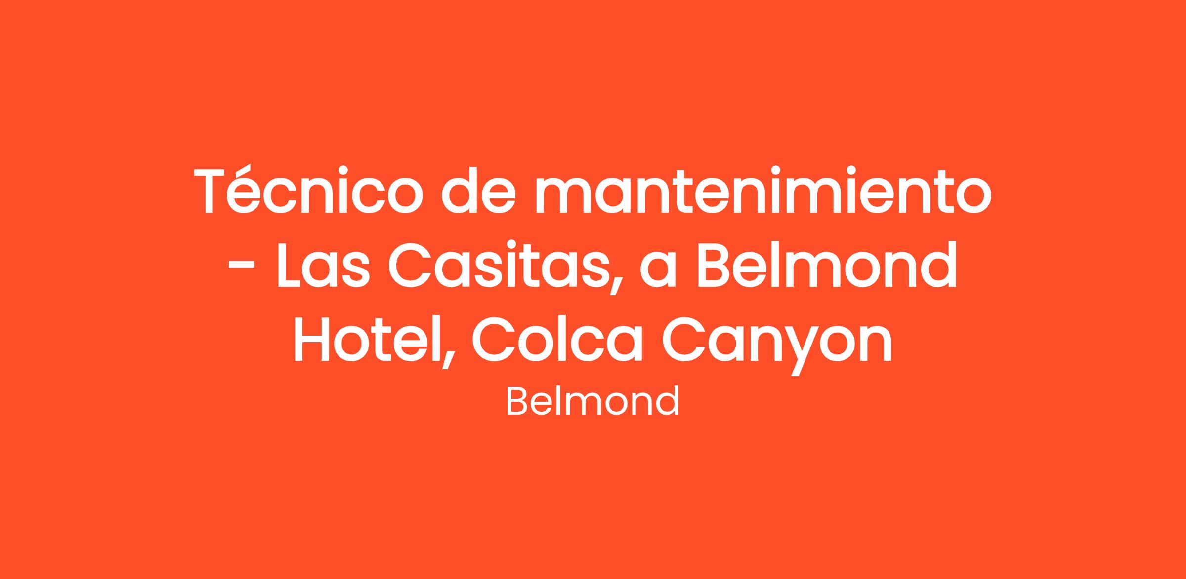 Como técnico de Mantenimiento en Las Casitas, a Belmond Hotel, Colca Canyon garantizarás el buen funcionamiento de los equipos y de la instalación en su destino. En este puesto, serás un protector orgulloso de la infraestructura que permite a nuestro equipo ofrecer una experiencia de lujo y proporcionar un servicio óptimo. Si estás buscando desarrollar tus habilidades y ser parte del futuro del lujo, este es tu momento.