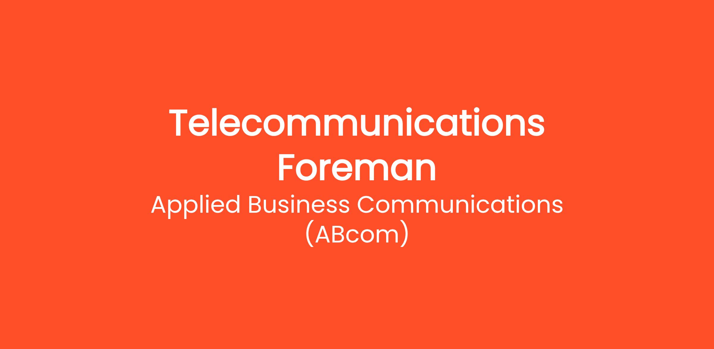 Applied Business Communications (ABcom) is a national low voltage BICSI Certified Prestige commercial structured cabling contractor and we are recruiting our next Telecommunications Foreman. “We Connect” relationally and technically. And, we do it within the framework of our corporate values: Family, Accountability, Profitability, Integrity, and Quality. Immediate positions are available. Contact us now for more information on joining a great team today!