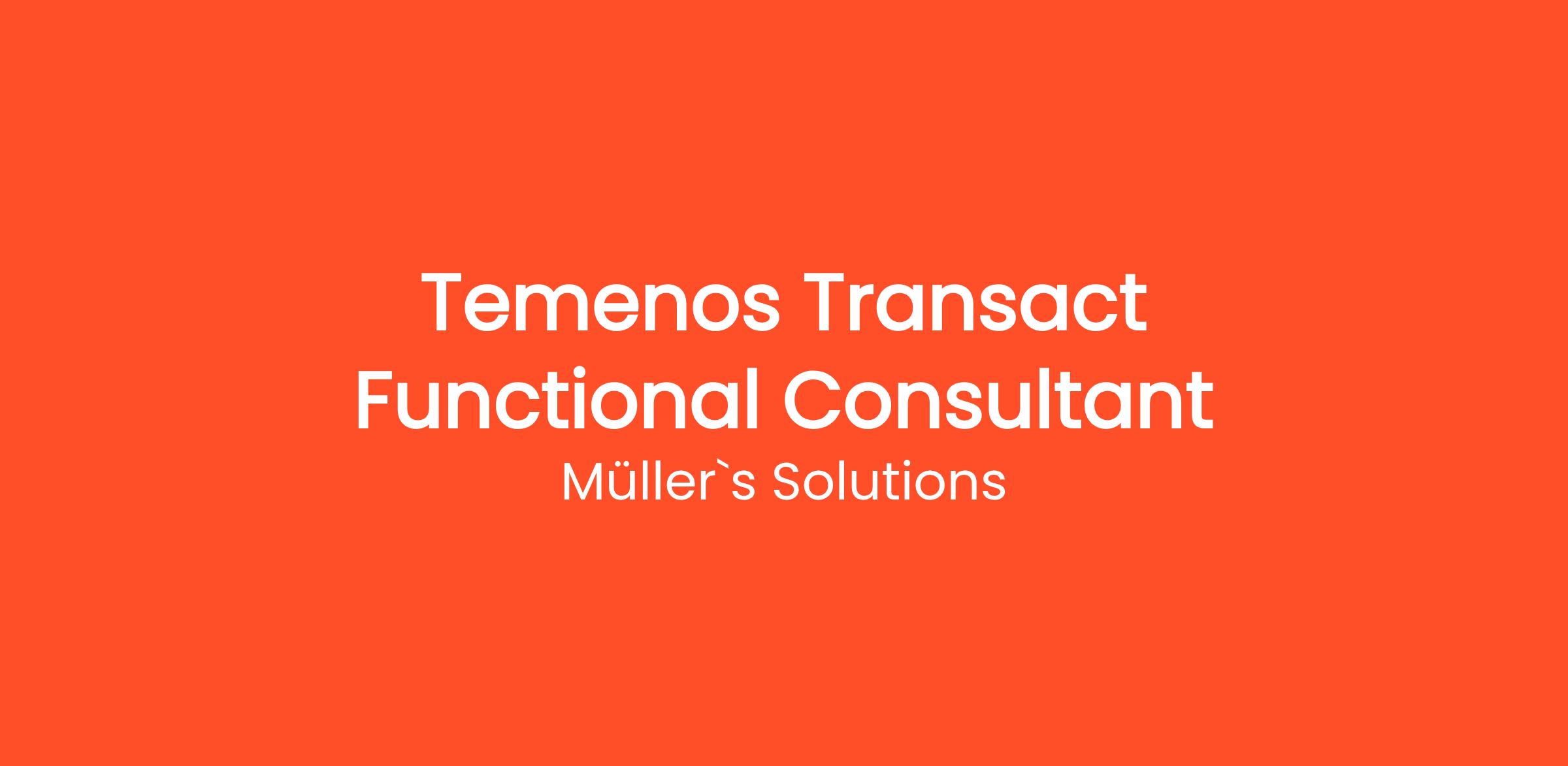 Müller's Solutions is seeking a skilled Temenos Transact Functional Consultant to join our team to to play a pivotal role in the implementation, customization, and support of our Temenos Transact (formerly T24) core banking system. he ideal candidate will bridge the gap between business needs and technical solutions, ensuring the platform is configured to optimize banking operations. You will be responsible for analyzing business processes, gathering requirements, and delivering functional solutions that meet the highest standards of quality and efficiency.