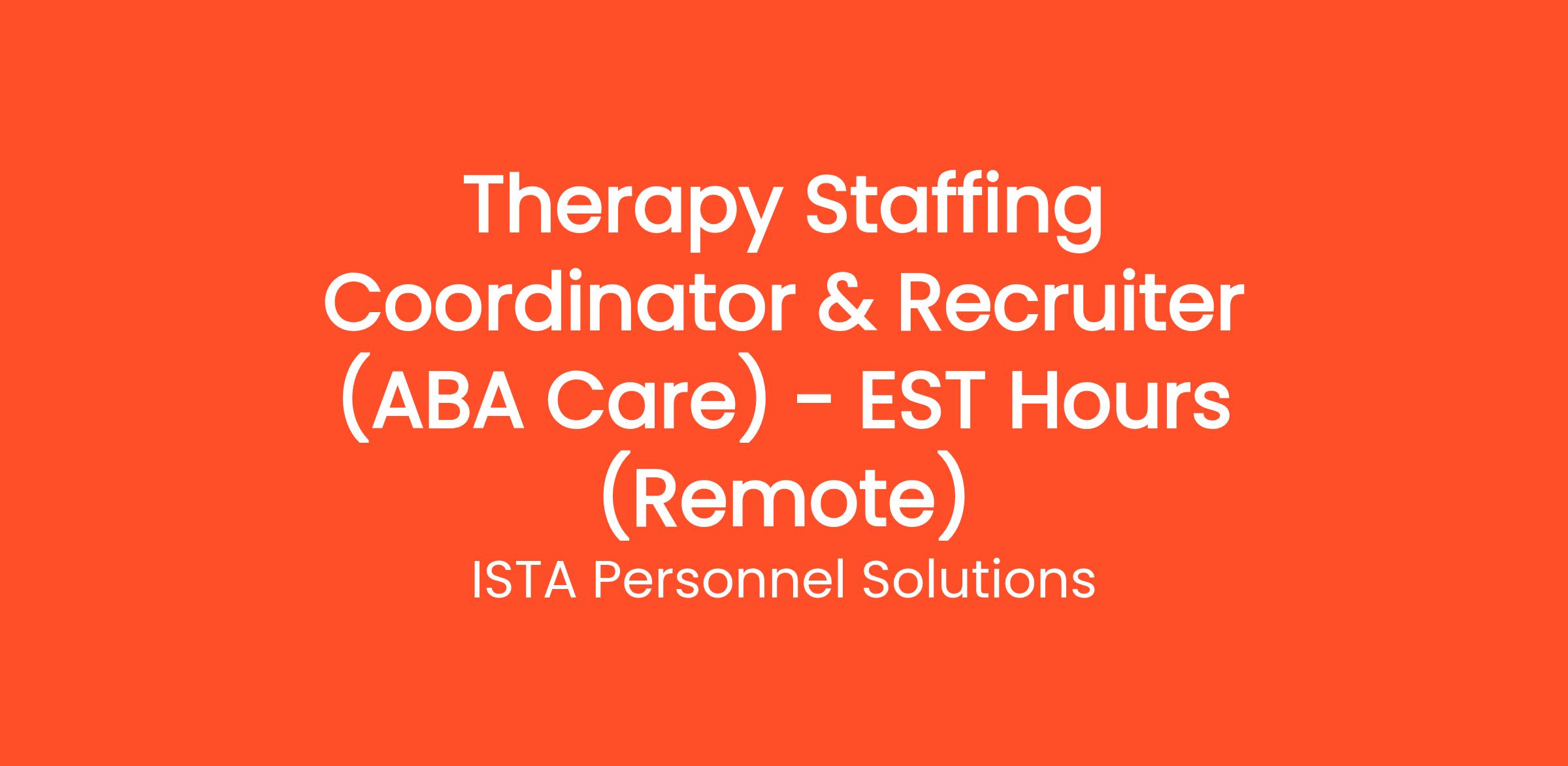 We are seeking a highly organized Therapy Staffing Coordinator & Recruiter to support a U.S.-based ABA (Applied Behavior Analysis) therapy provider. This role is both people-focused and operations-driven: you’ll serve as the bridge between families seeking ABA care and the therapists who provide it.