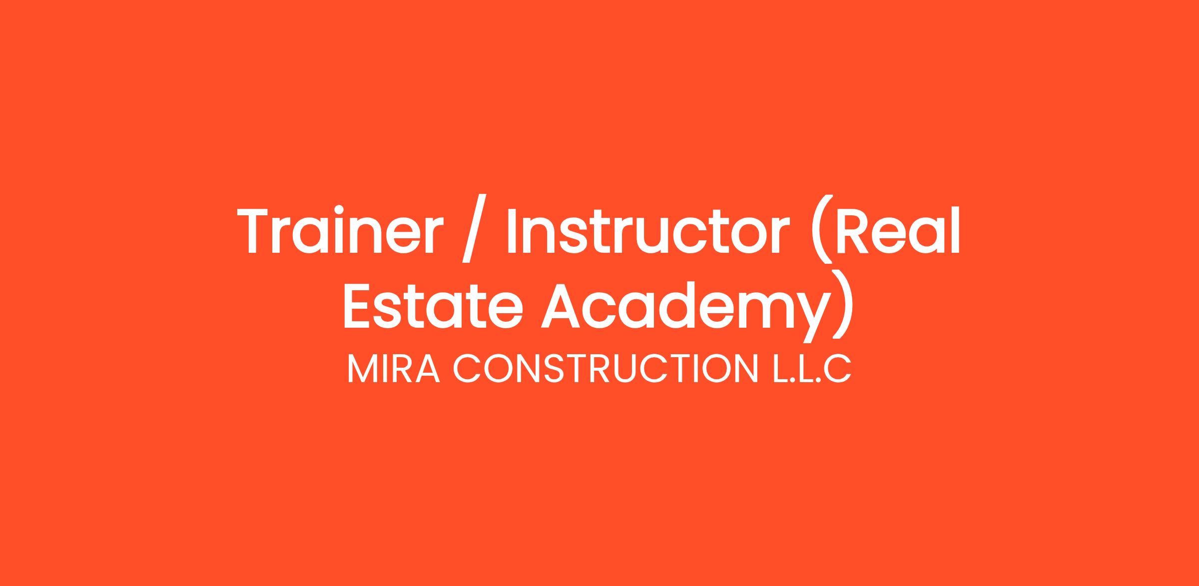 We are looking for a passionate and engaging Trainer to join our Real Estate Academy in Dubai.