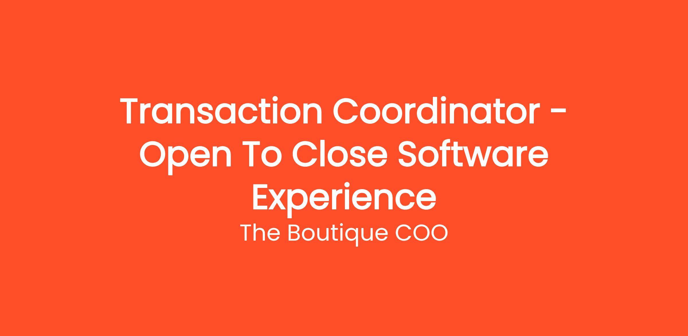 The Boutique COO is seeking a talented and detail-oriented Transaction Coordinator to join our vibrant team. As a Transaction Coordinator, you'll play a critical role in the real estate transaction process, ensuring that every detail is meticulously managed from contract to closing. This position demands a high level of organization, strong communication skills, and the ability to work collaboratively with agents, clients, and other stakeholders. You will be responsible for overseeing the flow of paperwork, coordinating appointments, and maintaining timelines to ensure smooth transactions. We're looking for someone who thrives in a fast-paced environment, has a proactive approach, and is dedicated to providing exceptional service to our clients. If you're committed to excellence and looking for an opportunity to grow within a supportive and dynamic company, we want to hear from you. Bring your expertise and passion for real estate to The Boutique COO, where we prioritize innovation, collaboration, and success in every project. Our ideal candidate will be an integral part of our team, helping to streamline processes and enhance the overall client experience. Join us as we redefine excellence in the world of real estate transactions!