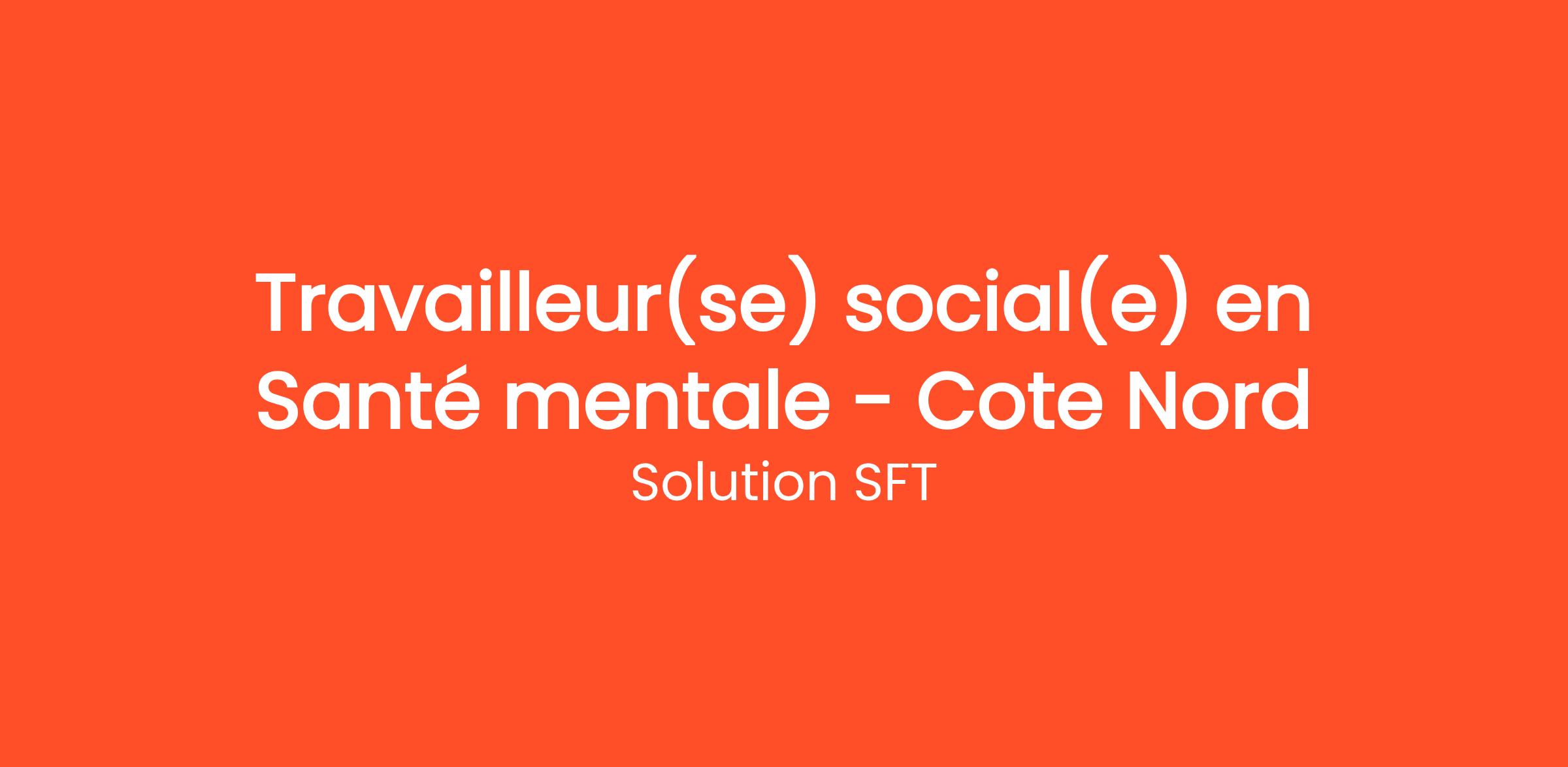 Services SFT est à la recherche d’un(e) Travailleur(se) social(e) pour occuper un poste en santé mentale au sein du réseau de la santé sur la magnifique Côte Nord. Vous aurez l’occasion de travailler auprès d’une clientèle variée dans un cadre stimulant.