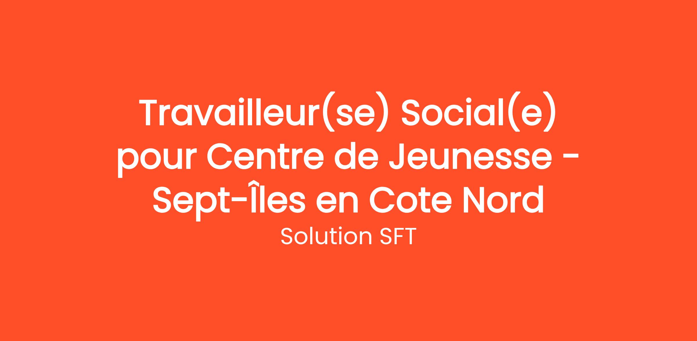 Nous recherchons des Travailleurs Sociaux ayant de l'expérience probante en centre de jeunesse et/ou en DPJ pour rejoindre notre équipe a Sept-Iles en Cote nord