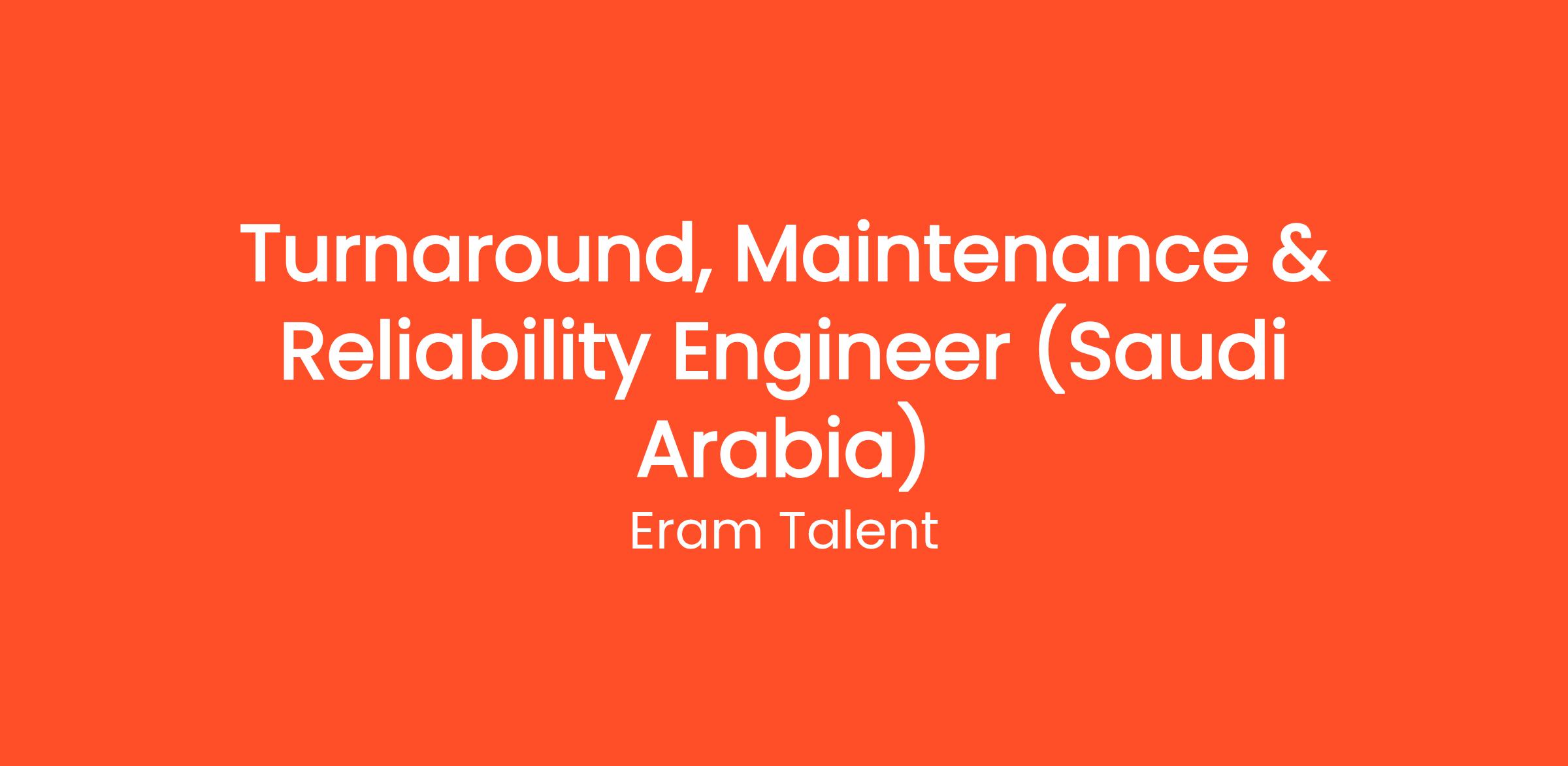Eram Talent is seeking a knowledgeable and proactive Turnaround, Maintenance & Reliability Engineer to join our team in Saudi Arabia. As a division of ERAM Group, This role is crucial for ensuring that our assets run reliably and efficiently, especially during planned turnarounds.