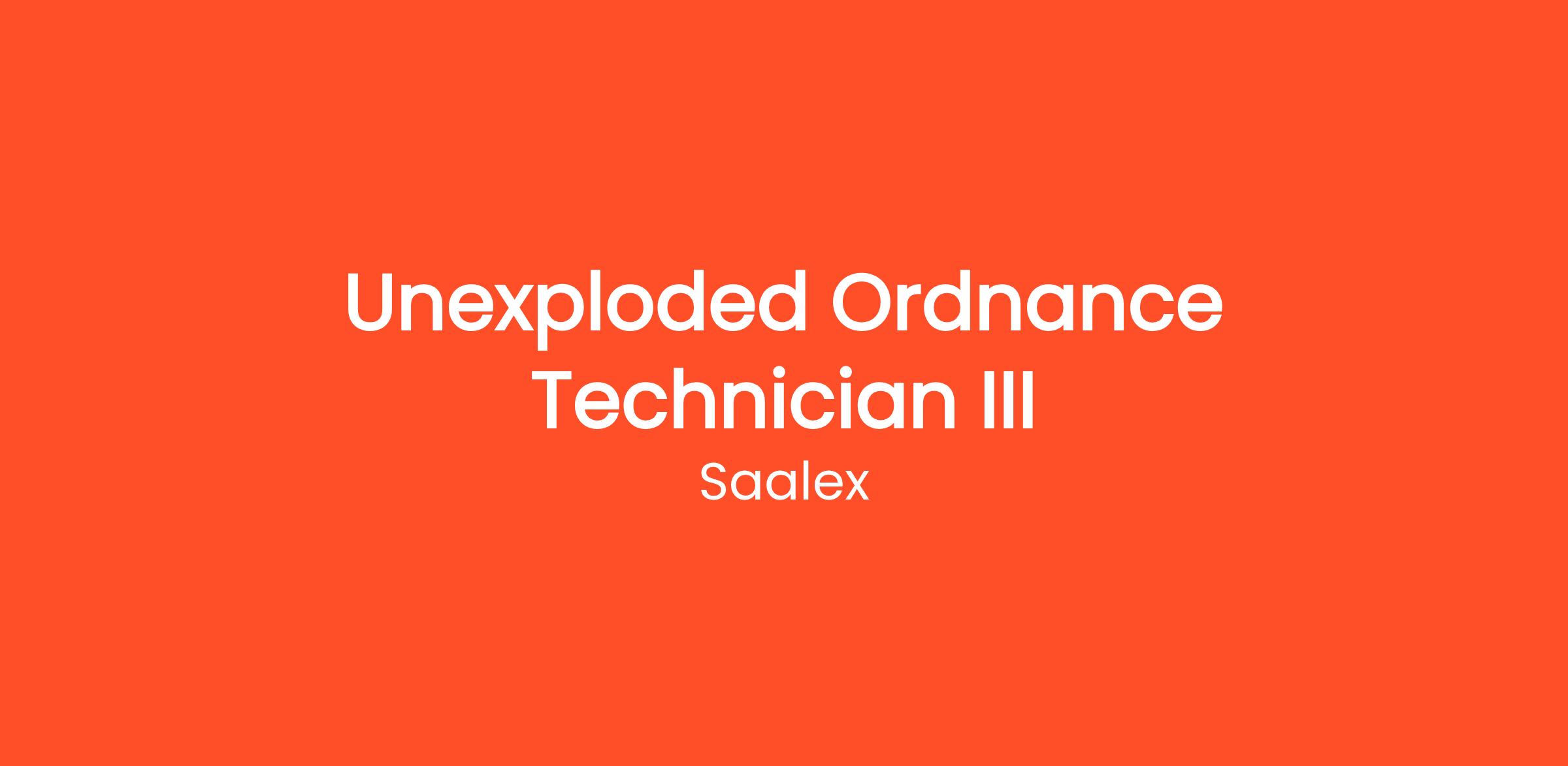 Saalex is seeking an Unexploded Ordnance Technician III in Ridgecrest, CA. Saalex Solutions, a division of Saalex Corp., is an Engineering and Information Technology Services company with a focus on Test Range Operations and Management, Engineering and Logistics Services, Data Analytics and Business Intelligence Services and Information Technology Services.