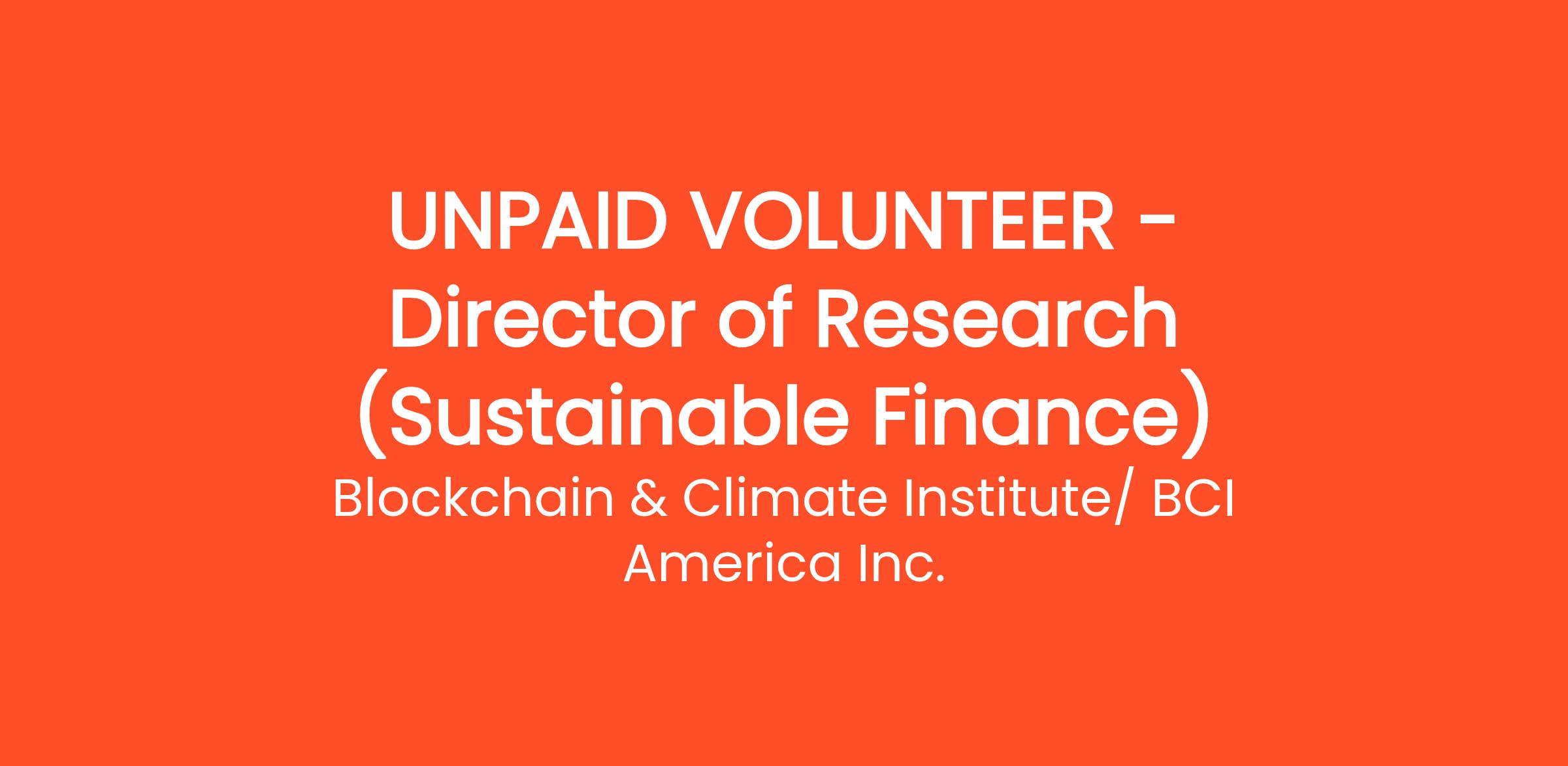 Role Title: Director of Research (Sustainable Finance)