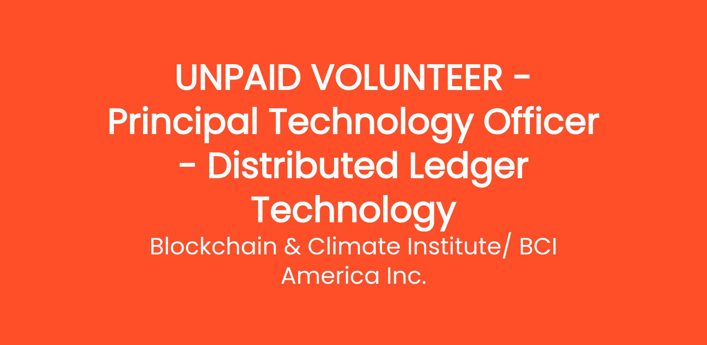 Role Title: Principal Technology Officer (PTO) – Distributed Ledger Technology (DLT)