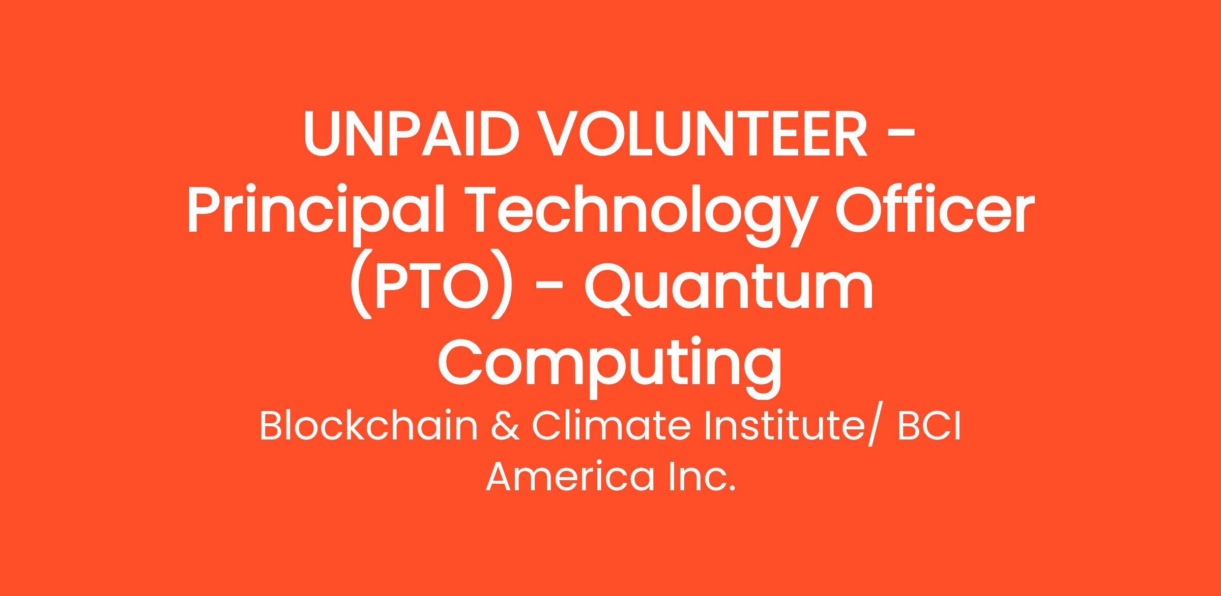 Role Title: Principal Technology Officer (PTO) – Quantum Computing