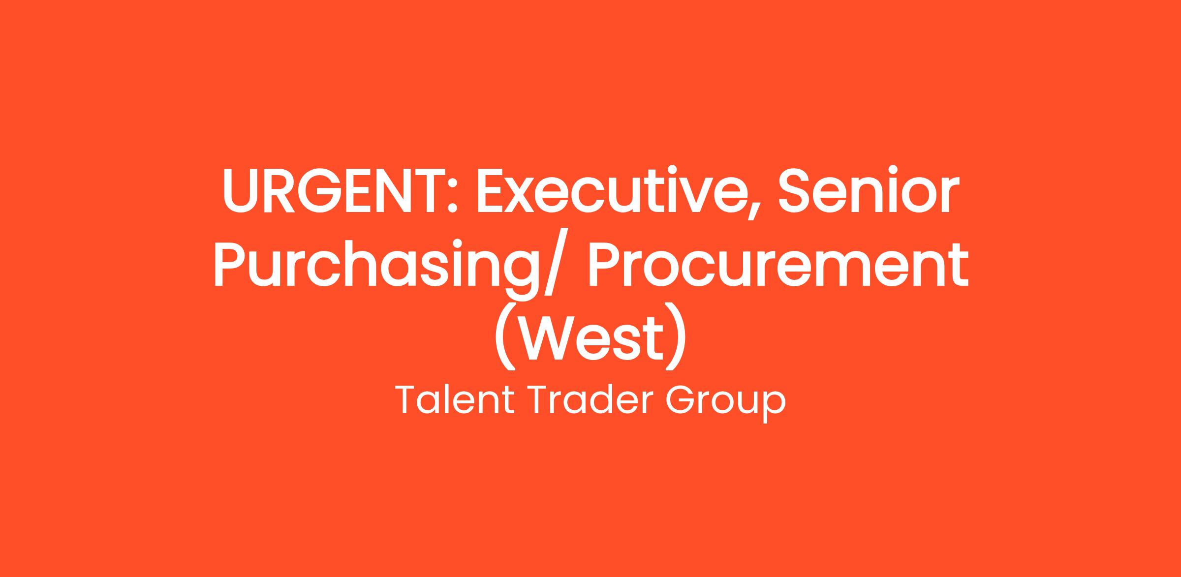 URGENT: Executive, Senior Purchasing/ Procurement (West)