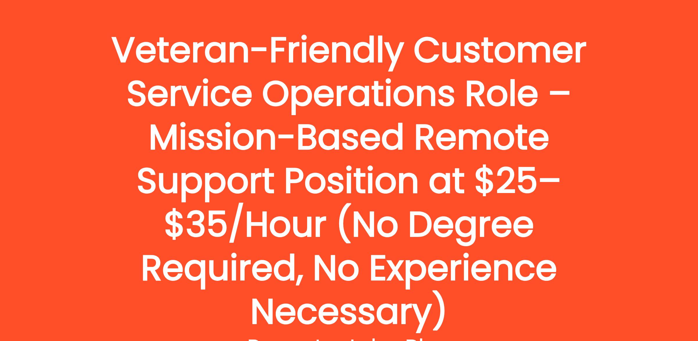 Veteran-Friendly Customer Service Operations Role – Mission-Based Remote Support Position at $25–$35/Hour (No Degree Required, No Experience Necessary)