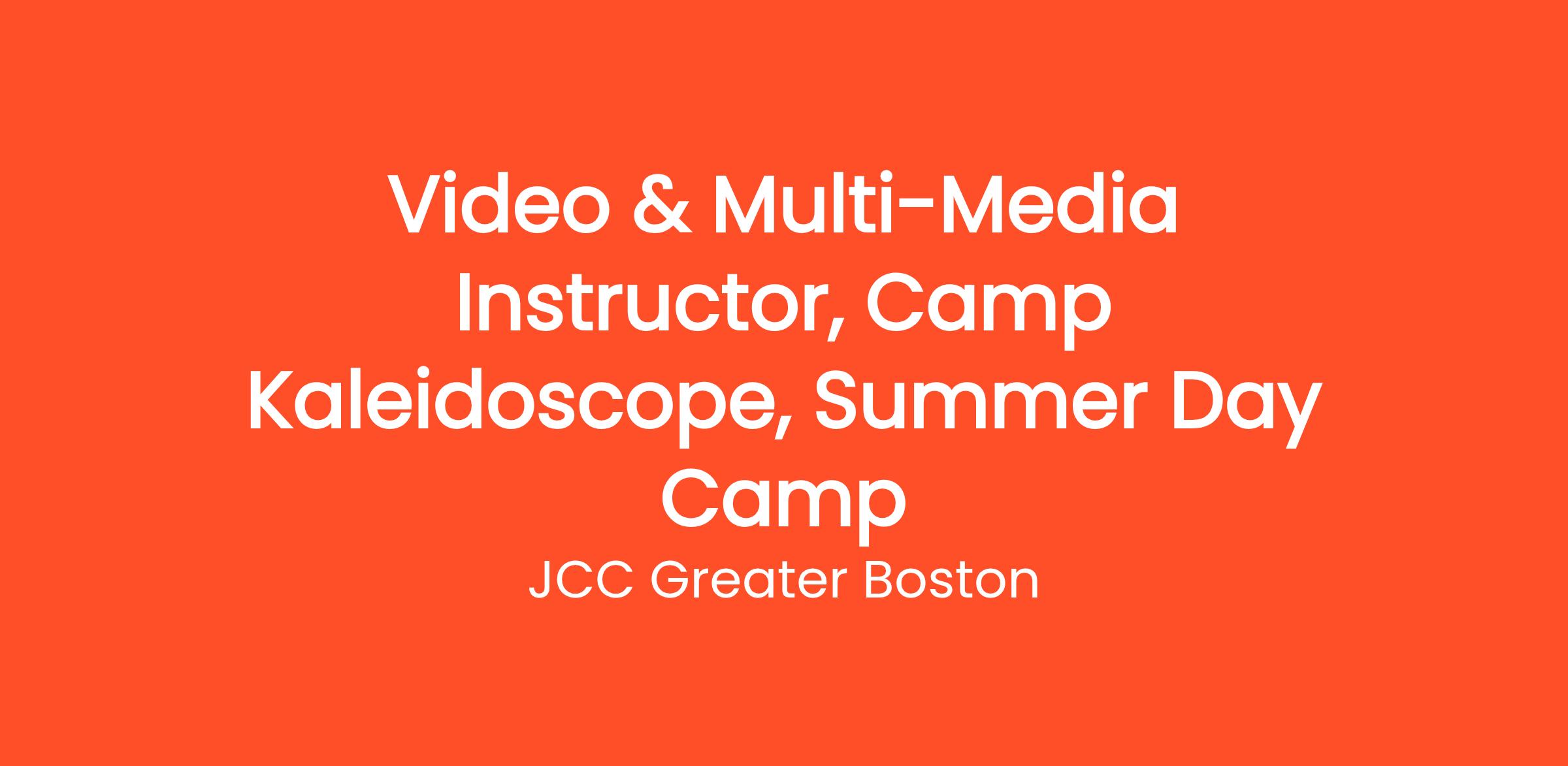 Share your love of film, video, podcasting and other multi-media by teaching filmmaking and media-related classes for children entering grades 4 - 8 this summer. Camp Kaleidoscope, the JCC summer day camp in Newton, draws creative campers interested in the arts, science and the outdoors. Camp Counselors and activity specialists guide campers in drama, art, science, sports, swimming and much more as they develop and build self-confidence. The energy of the camp is lively, playful and warm, as both campers and staff develop lifelong friendships.