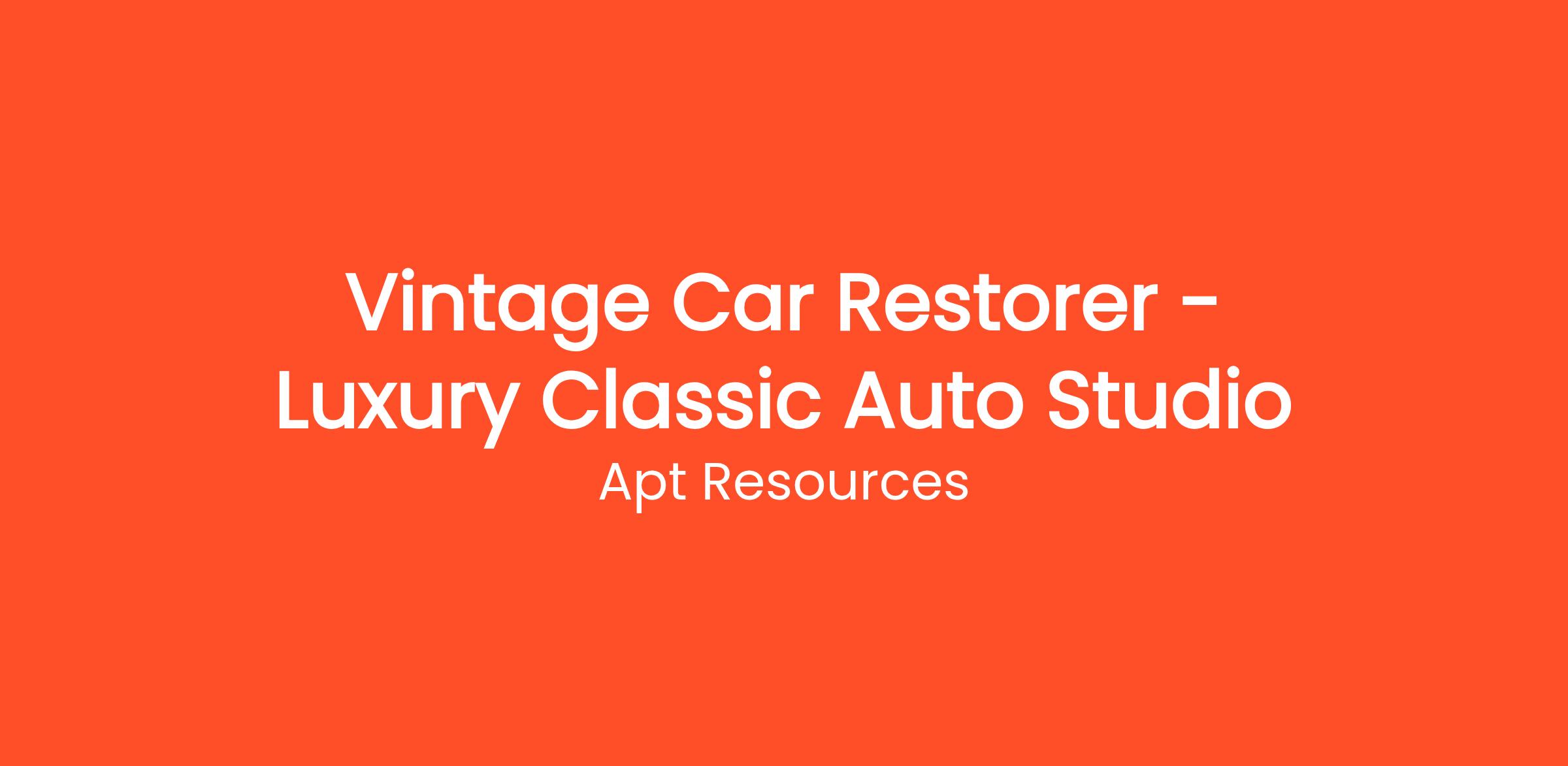 Apt Resources is seeking a skilled Vintage Car Restorer to join an exclusive Luxury Classic Auto Studio. If you are passionate about classic cars and have a keen eye for detail, this is the perfect opportunity for you to showcase your skills in restoring vintage vehicles back to their original glory.