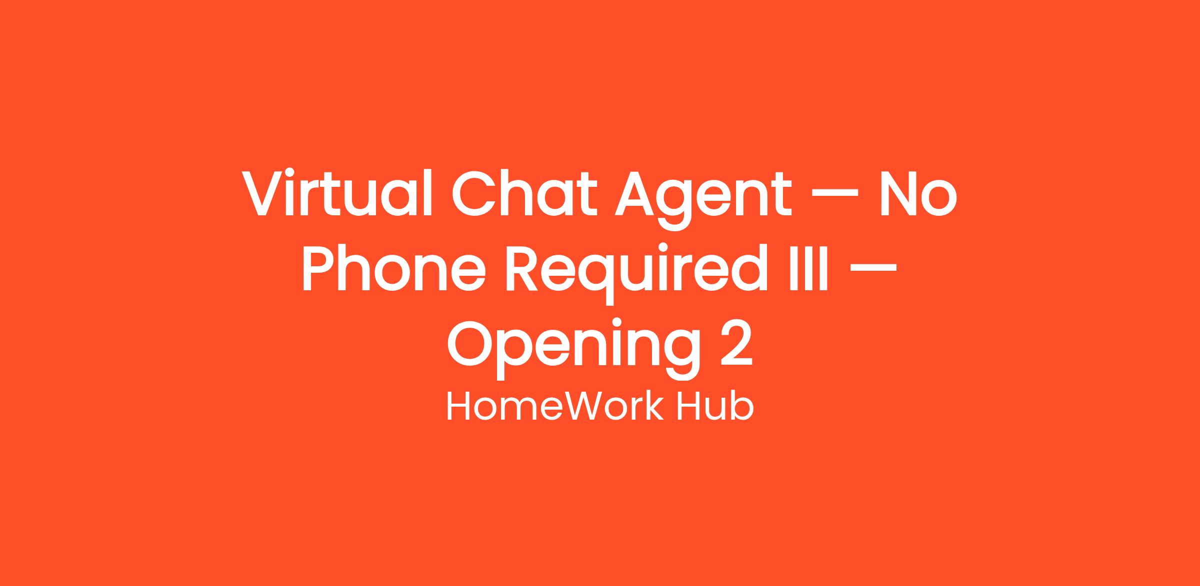 Thousands of people are already working from home as a Virtual Chat Agent — No Phone Required III — Opening 2 with HomeWork Hub. Earn money answering live chat messages on websites — no phone calls, no experience needed, and 100% work from home. This work-from-home opportunity requires no commute, no degree, and no special prior experience. Get started on your own terms — choose your own hours and work as many or as few hours per week as you need. Payouts are processed regularly with multiple withdrawal options so you always get paid on time.