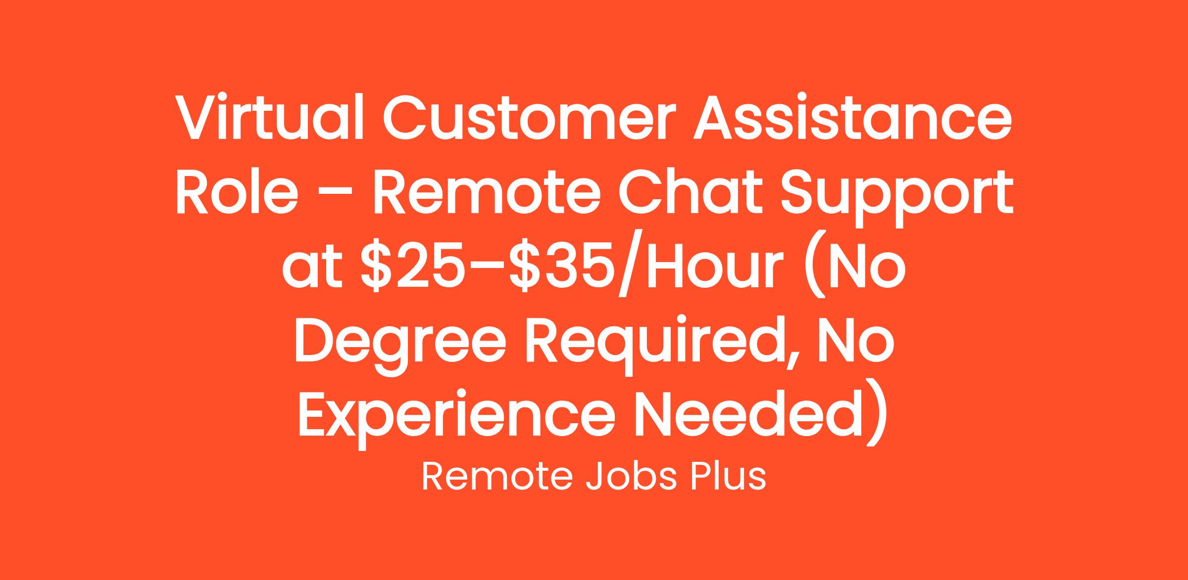 Virtual Customer Assistance Role – Remote Chat Support at $25–$35/Hour (No Degree Required, No Experience Needed)