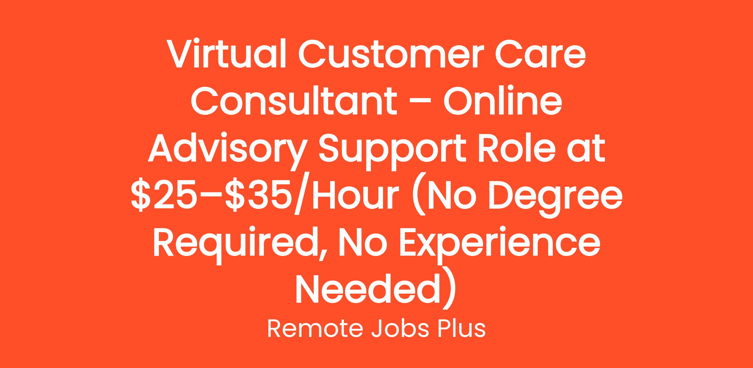 Virtual Customer Care Consultant – Online Advisory Support Role at $25–$35/Hour (No Degree Required, No Experience Needed)