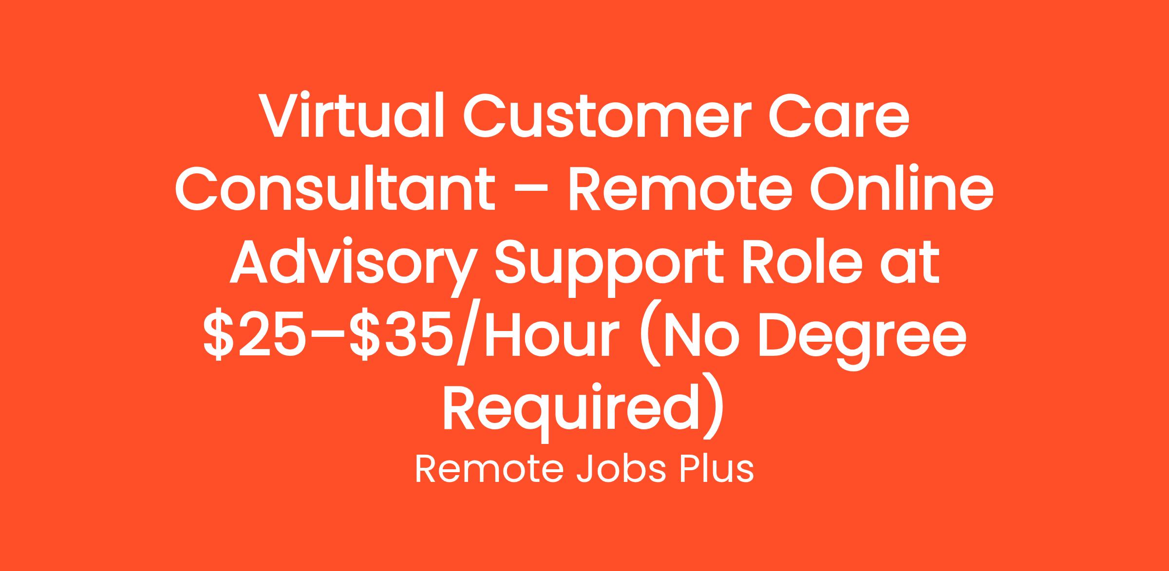 Virtual Customer Care Consultant – Remote Online Advisory Support Role at $25–$35/Hour (No Degree Required)