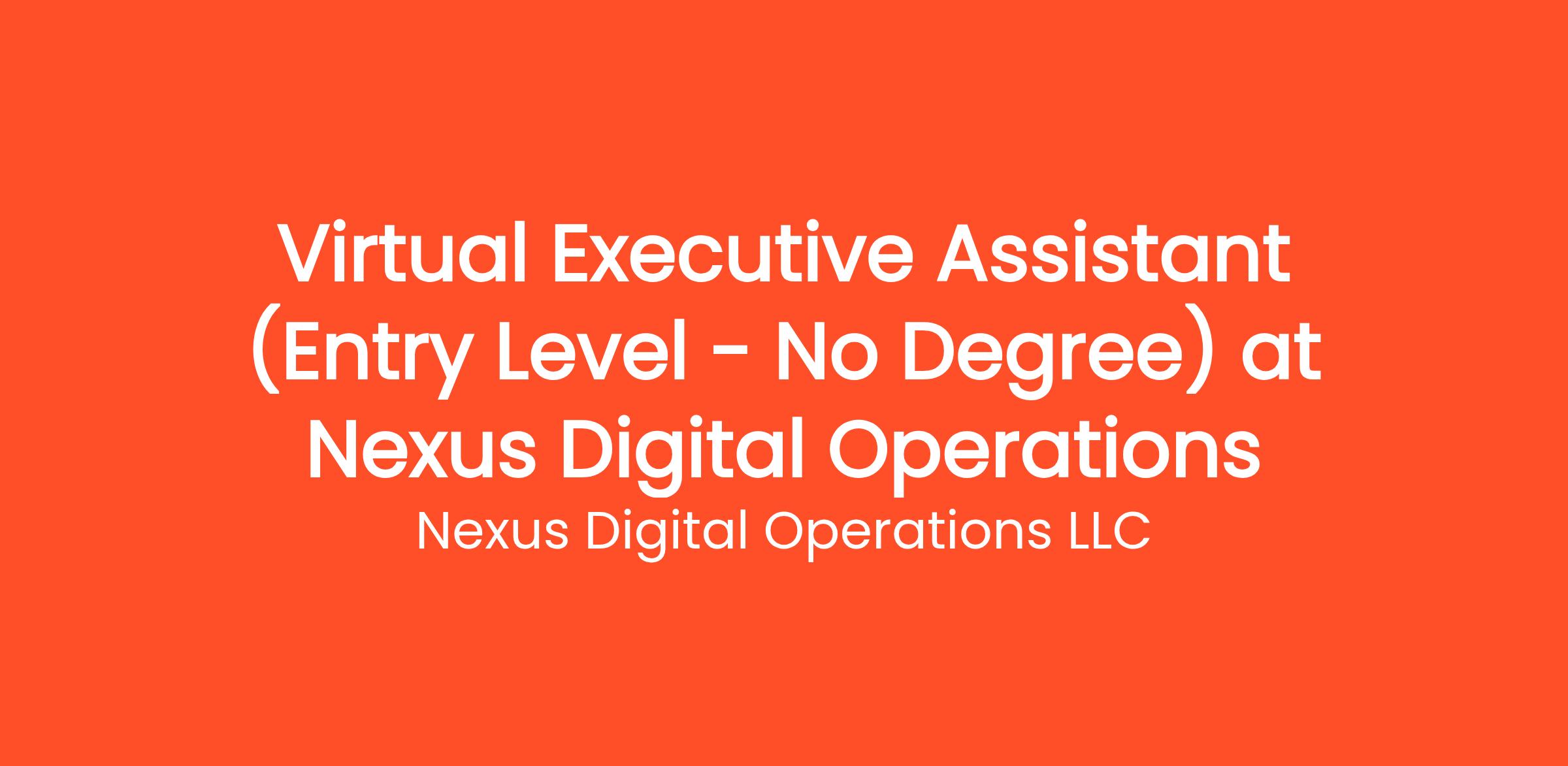 Are you highly organized and looking for the perfect entry-level opportunity? Nexus Digital Operations LLC is currently seeking a Virtual Executive Assistant (Entry Level - No Degree) to join our rapidly growing remote team. If you've been searching for remote jobs no degree or virtual assistant jobs, this is the exact role you've been looking for. No degree required and no prior experience is necessary—we provide comprehensive training to all new hires! You will be responsible for critical daily operations, managing secure platforms, and contributing to our vibrant digital culture.