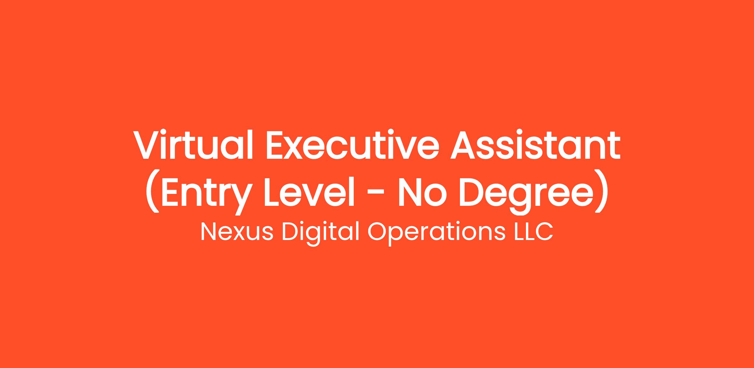 Are you highly organized and looking for the perfect entry-level opportunity? Nexus Digital Operations LLC is currently seeking a Virtual Executive Assistant (Entry Level - No Degree) to join our rapidly growing remote team. If you've been searching for remote jobs no degree or virtual assistant jobs, this is the exact role you've been looking for. No degree required and no prior experience is necessary—we provide comprehensive training to all new hires! You will be responsible for critical daily operations, managing secure platforms, and contributing to our vibrant digital culture.