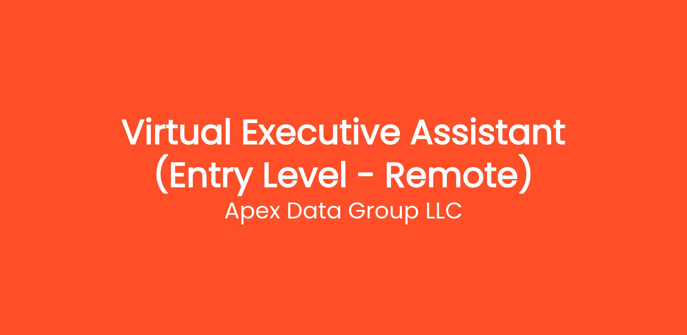 Are you highly organized and looking for the perfect entry-level opportunity? Apex Data Group LLC is currently seeking a Virtual Executive Assistant (Entry Level - Remote) to join our rapidly growing remote team. If you've been searching for remote jobs no degree or virtual assistant jobs, this is the exact role you've been looking for. No degree required and no prior experience is necessary—we provide comprehensive training to all new hires! You will be responsible for critical daily operations, managing secure platforms, and contributing to our vibrant digital culture.