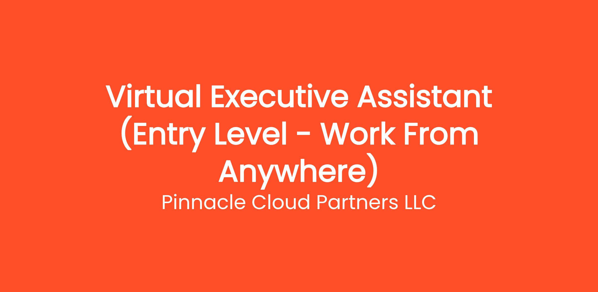 Are you highly organized and looking for the perfect entry-level opportunity? Pinnacle Cloud Partners LLC is currently seeking a Virtual Executive Assistant (Entry Level - Work From Anywhere) to join our rapidly growing remote team. If you've been searching for remote jobs no degree or remote jobs hiring, this is the exact role you've been looking for. No degree required and no prior experience is necessary—we provide comprehensive training to all new hires! You will be responsible for critical daily operations, managing secure platforms, and contributing to our vibrant digital culture.