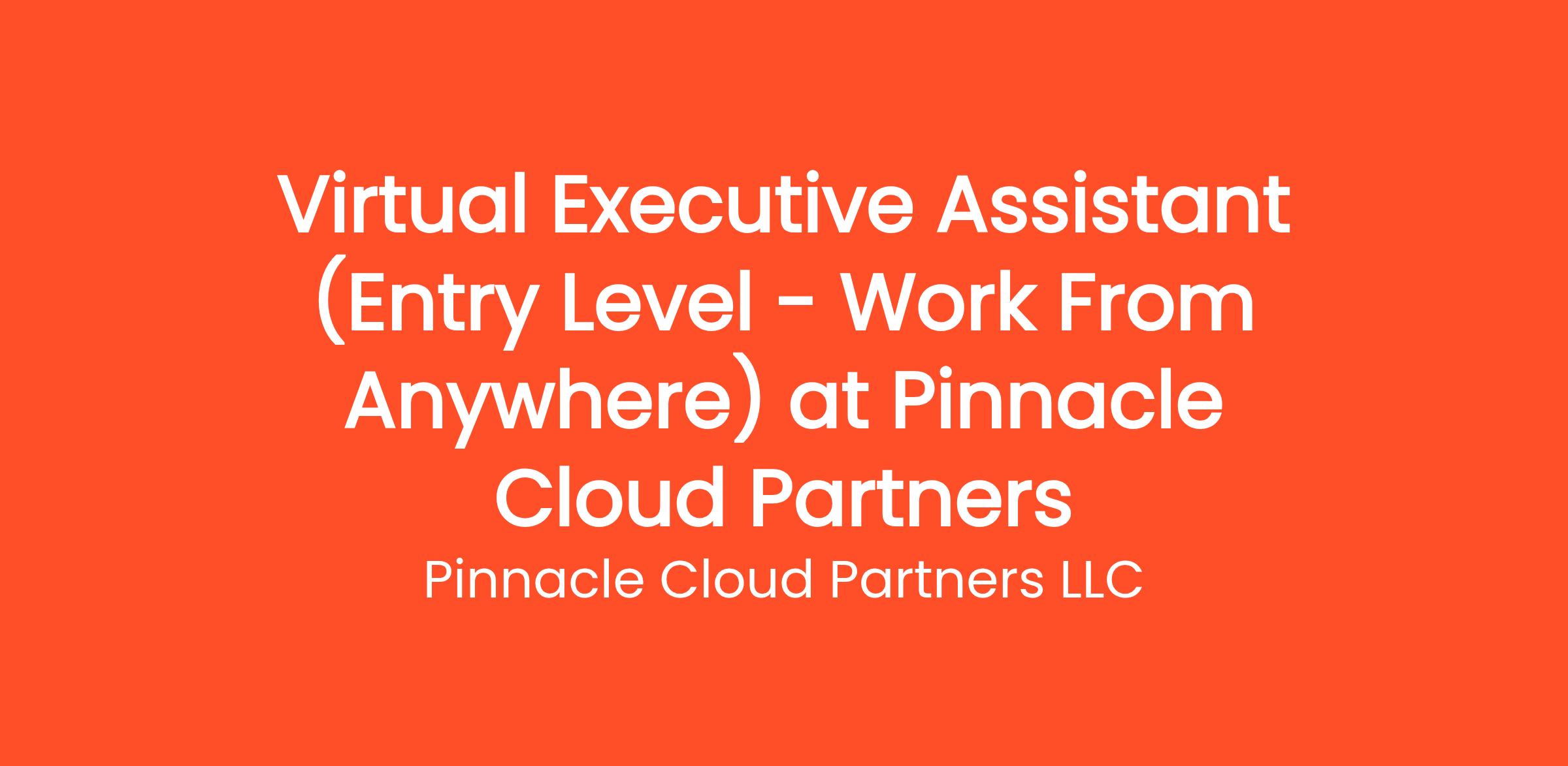 Are you highly organized and looking for the perfect entry-level opportunity? Pinnacle Cloud Partners LLC is currently seeking a Virtual Executive Assistant (Entry Level - Work From Anywhere) to join our rapidly growing remote team. If you've been searching for remote jobs no degree or remote jobs hiring, this is the exact role you've been looking for. No degree required and no prior experience is necessary—we provide comprehensive training to all new hires! You will be responsible for critical daily operations, managing secure platforms, and contributing to our vibrant digital culture.