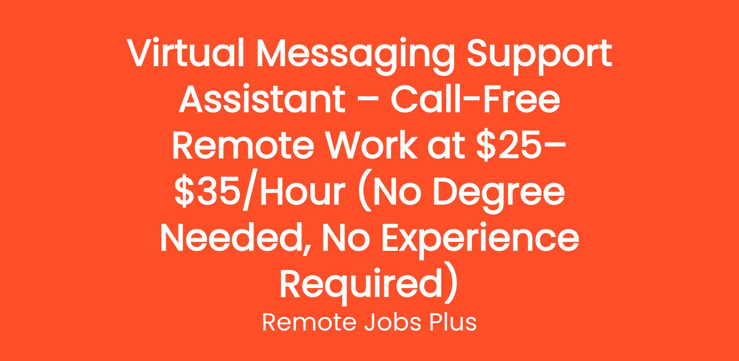 Virtual Messaging Support Assistant – Call-Free Remote Work at $25–$35/Hour (No Degree Needed, No Experience Required)