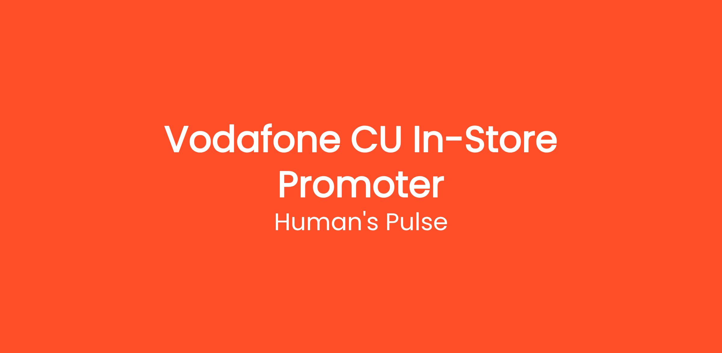 Η Human’s Pulse, για λογαριασμό της Vodafone, αναζητά δυναμικούς συνεργάτες-πωλητές / promoter που θα αναλάβουν την προώθηση πακέτων CU εντός καταστημάτων! Αξιοποίησε αυτή τη μοναδική ευκαιρία για να αναπτύξεις σημαντικές δεξιότητες, να γνωρίσεις τον κόσμο των πωλήσεων και να κάνεις τα πρώτα σου επαγγελματικά βήματα σε ένα δυναμικό περιβάλλον.