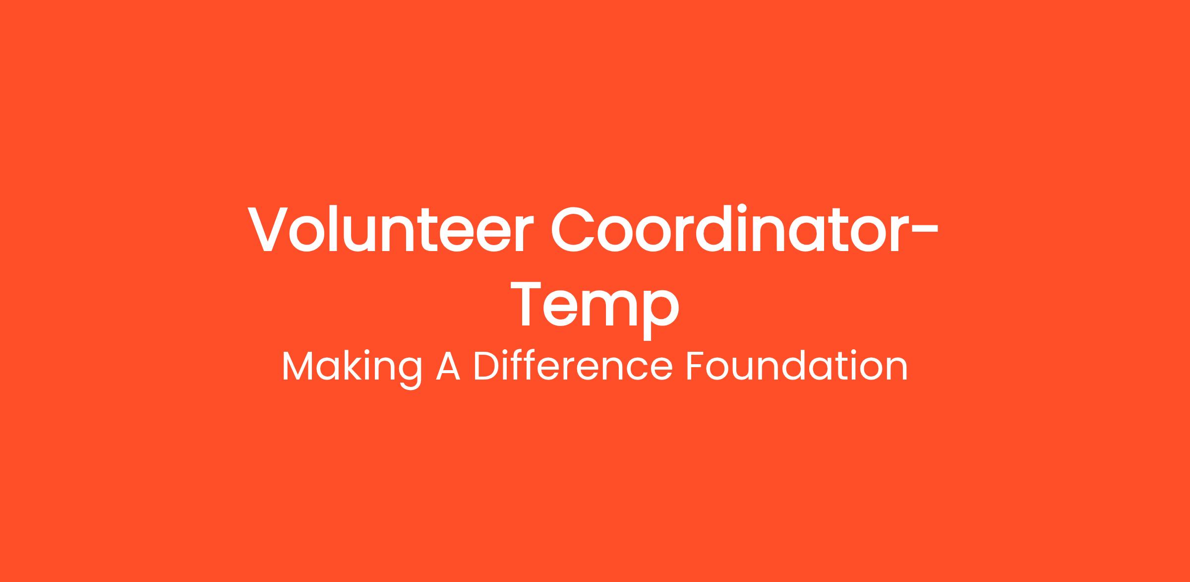 The Volunteer Coordinator - Temp will support the Making A Difference Foundation in managing our volunteer program during a critical period. This temporary role is essential for ensuring that our volunteer initiatives run smoothly and effectively. The ideal candidate will have great organizational skills, an understanding of volunteer engagement, and a commitment to furthering our mission.