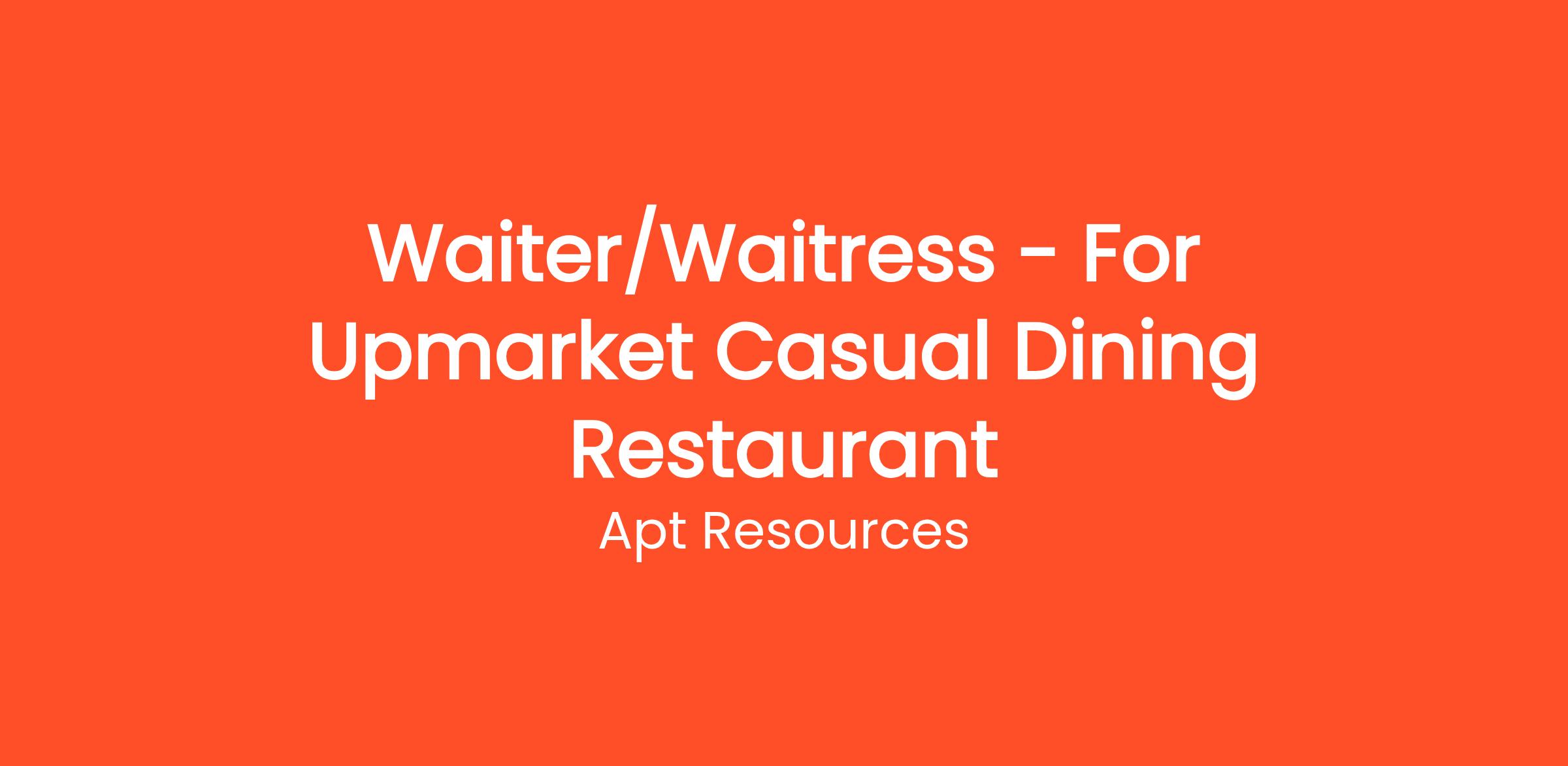 - Proven experience as a Waiter/Waitress in a casual dining environment, preferably in an upmarket setting