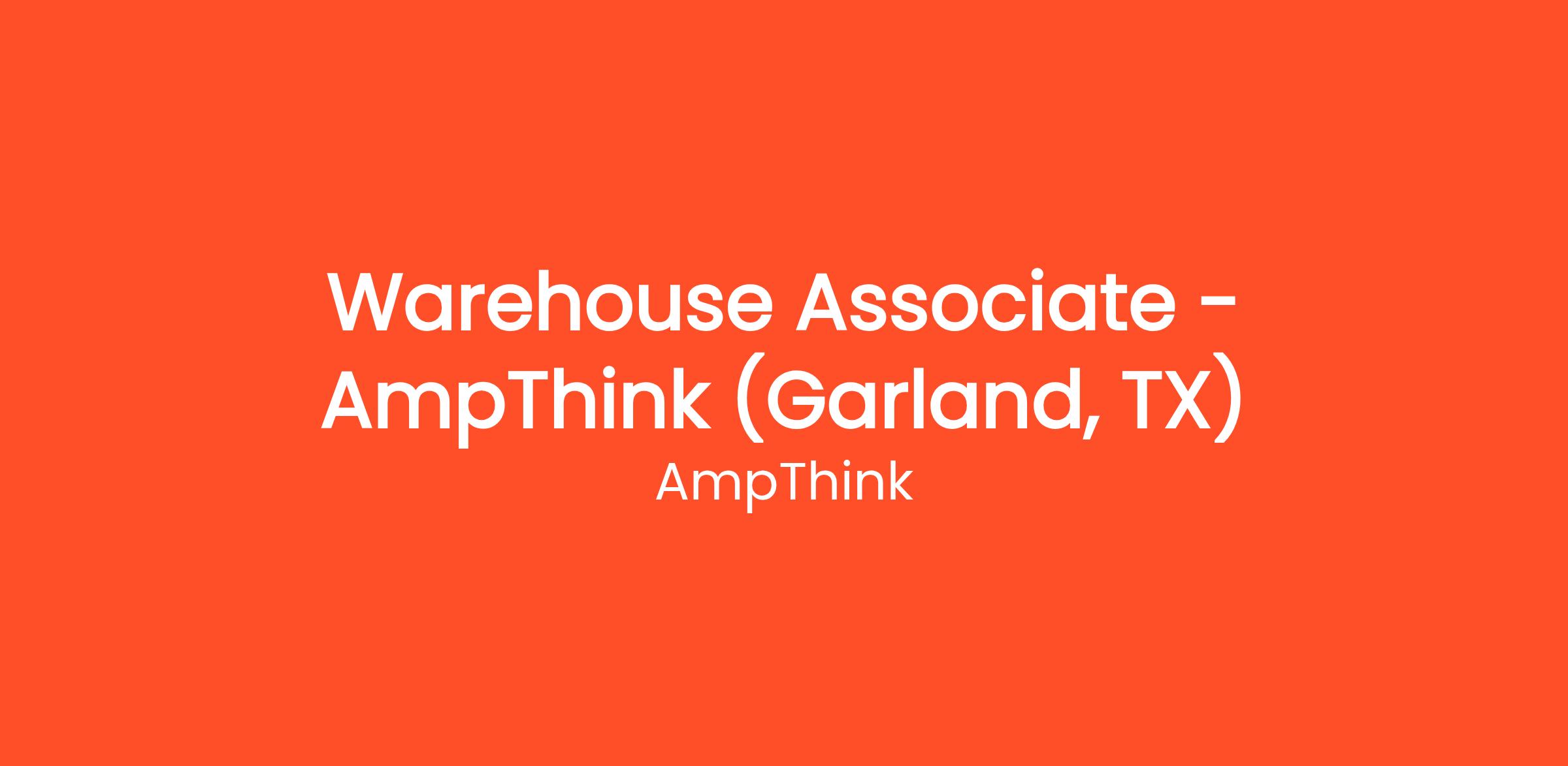 AmpThink is a leader in the design, manufacturing, and installation of Wi-Fi, audio, and display systems for some of the most prominent stadiums and event centers across North America. As we continue to grow, we are seeking a dedicated and detail-oriented Warehouse Associate to join our team in Garland, Texas.