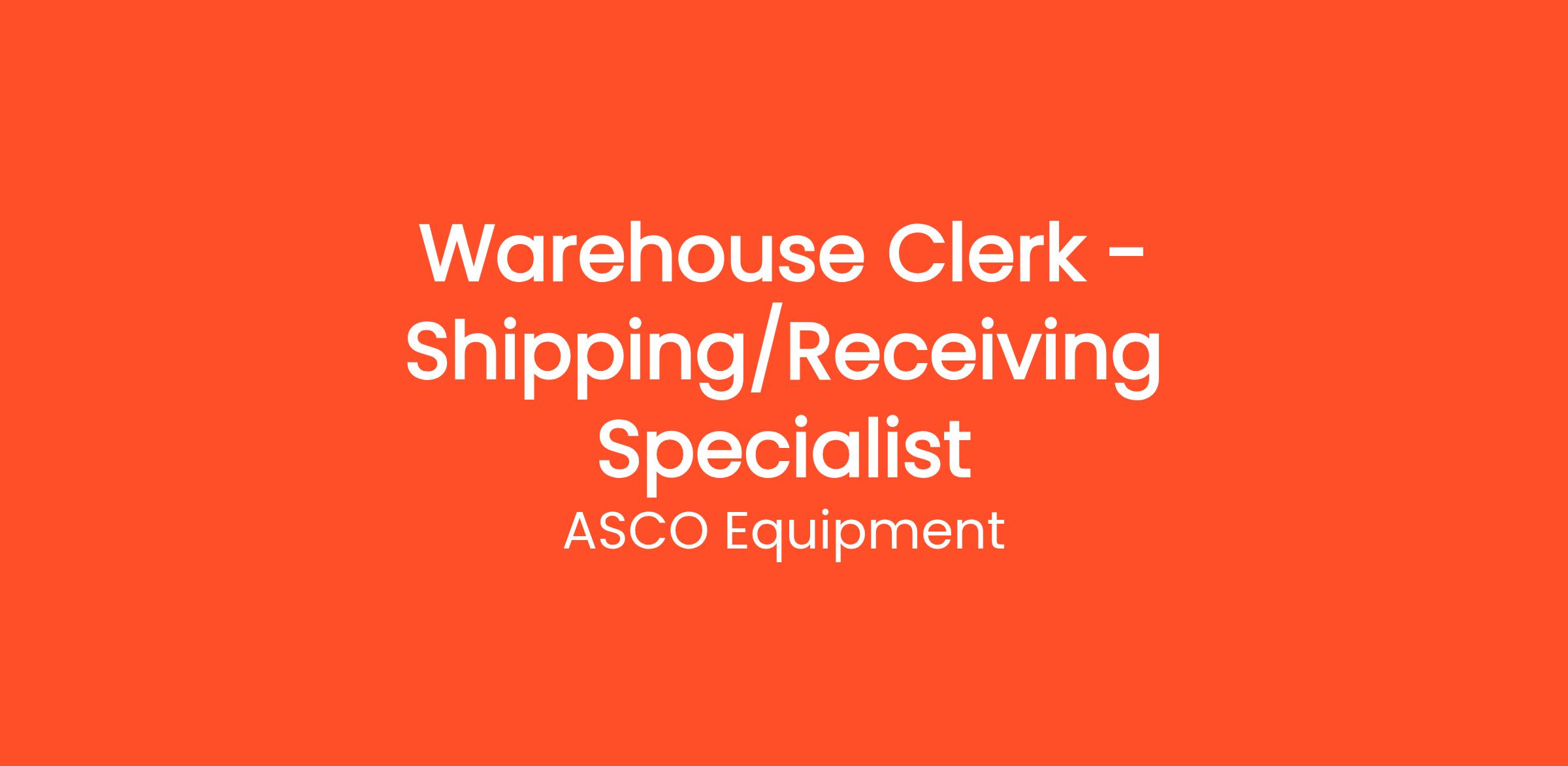 ASCO Equipment has a career opportunity for a Warehouse Clerk - Shipping/Receiving Specialist in Sherman, Texas. The Warehouse Clerk & Shipping Specialists will be responsible for aiding the parts department in fulfilling shipping and stocking needs. The Warehouse Clerk will verify and keep detailed records of incoming and outgoing shipments of parts and more by managing the warehouse inventory orders and returns.