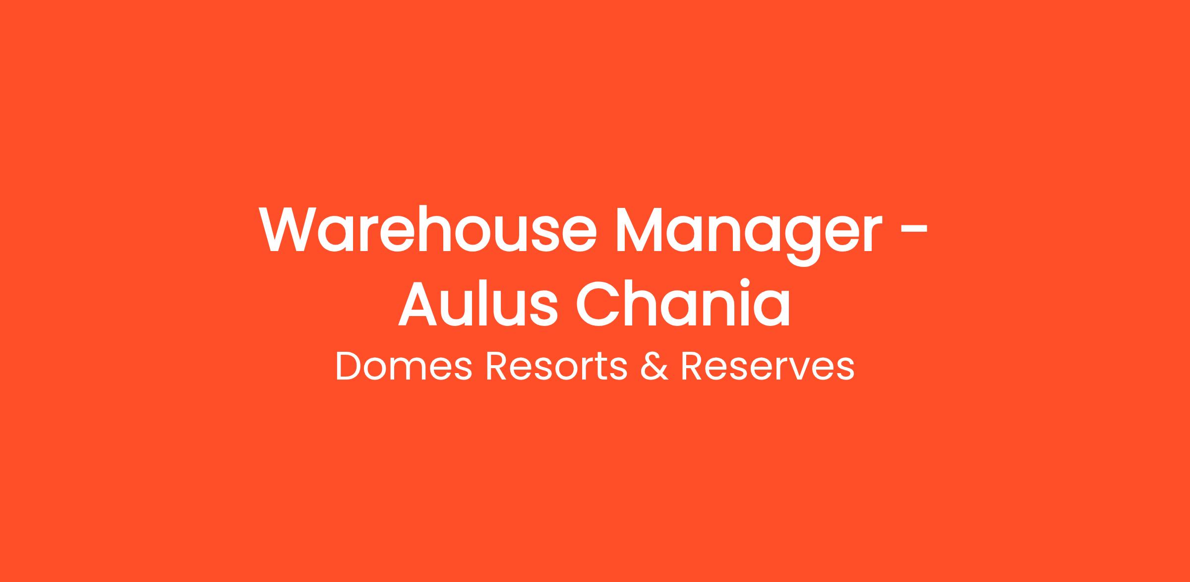 Domes Resorts are now hiring for a highly energetic, results-driven and experienced Warehouse Manager for our new 5* resort, Aulus Chania.